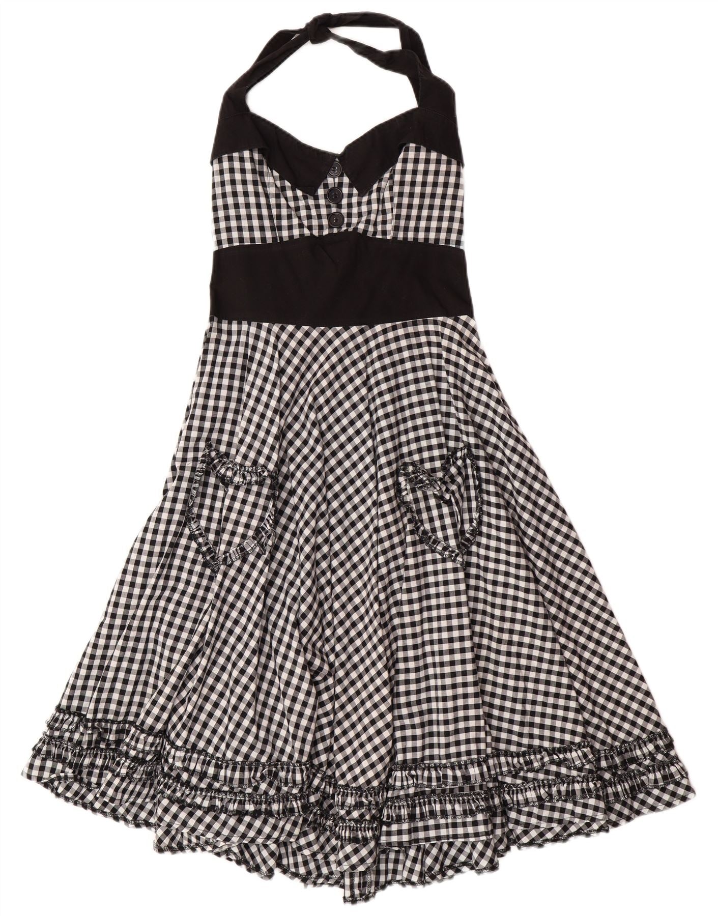 HELL BUNNY Vestido halter para mujer UK 8 Small Black Gingham Cotton