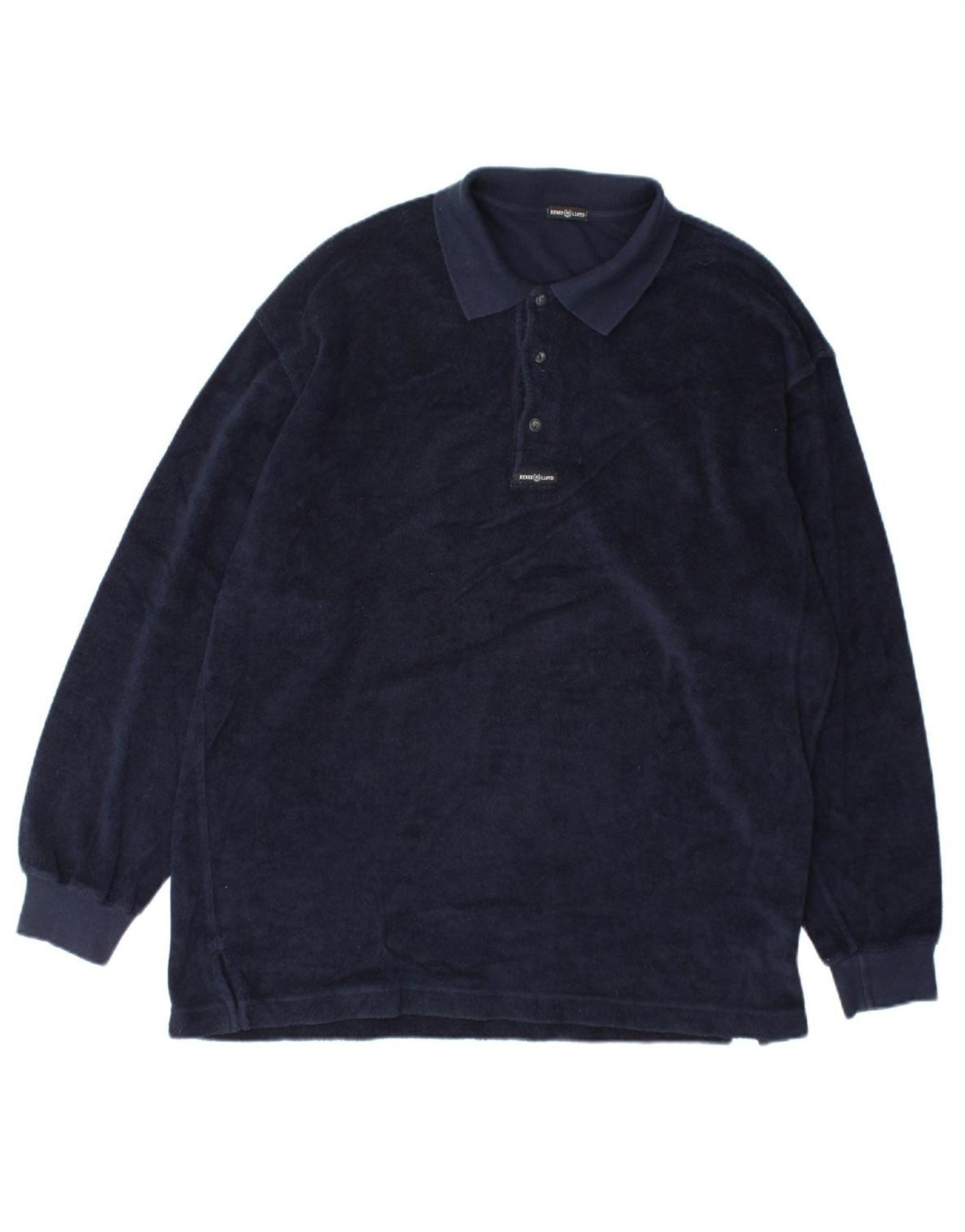 HENRI LLOYD Mens Polo Neck Jumper Sweater XL Navy Blue Cotton