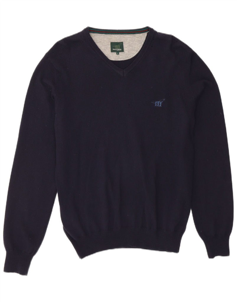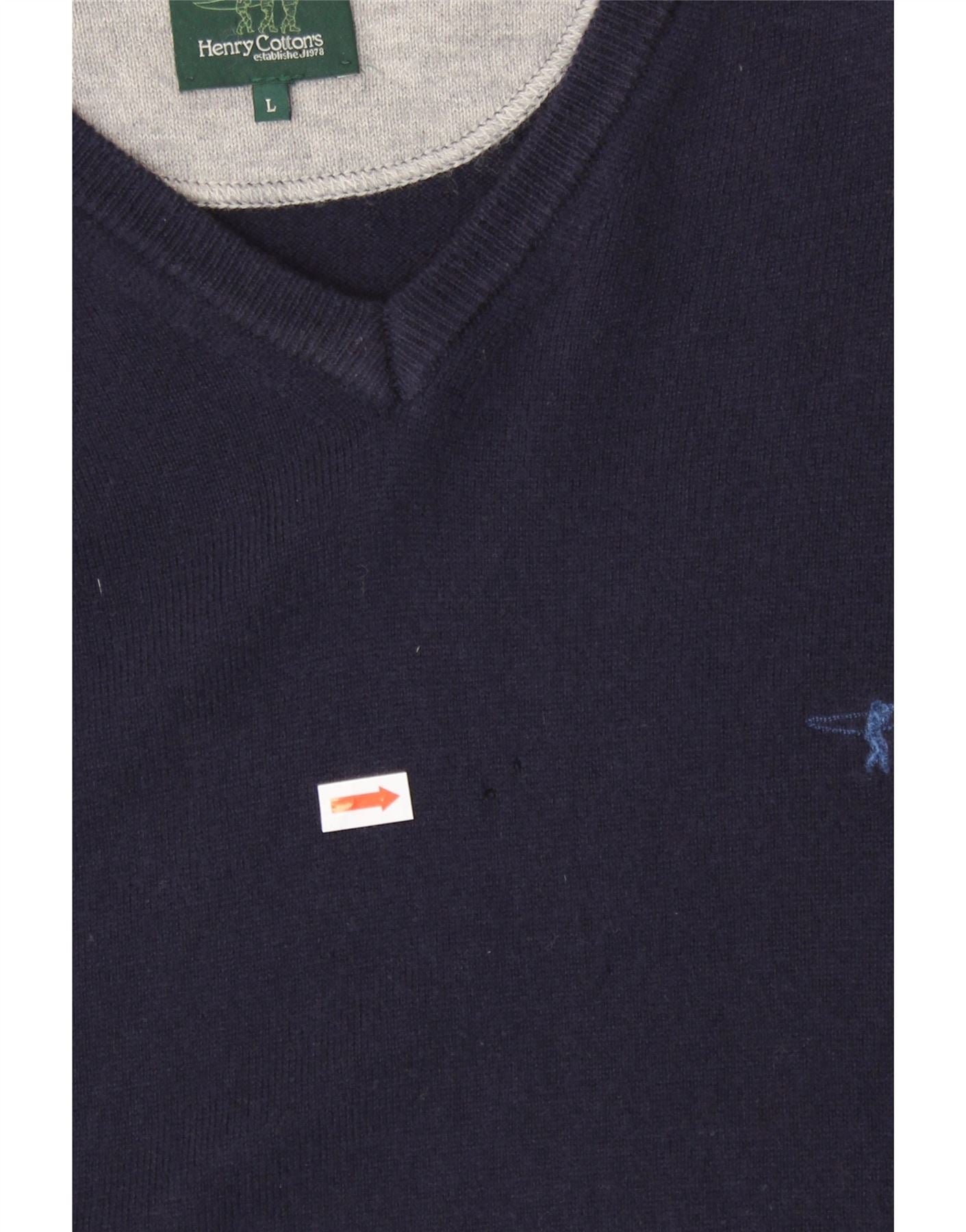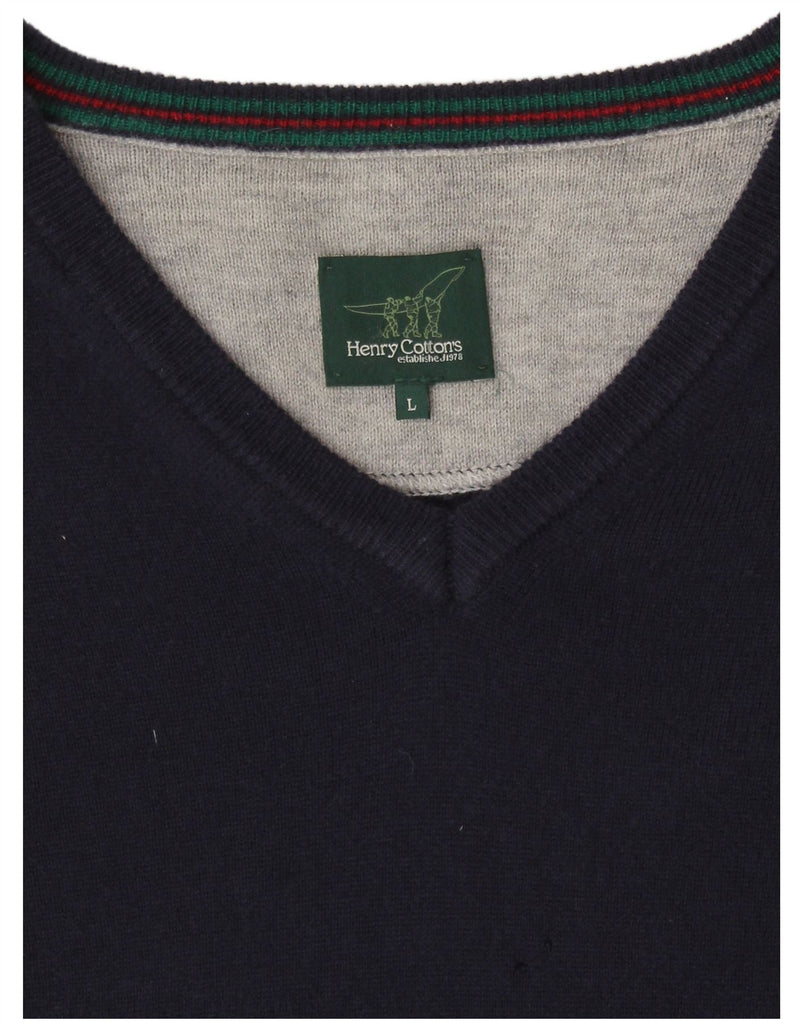 HENRY COTTONS Jersey con cuello en V para hombre, talla grande, azul marino
