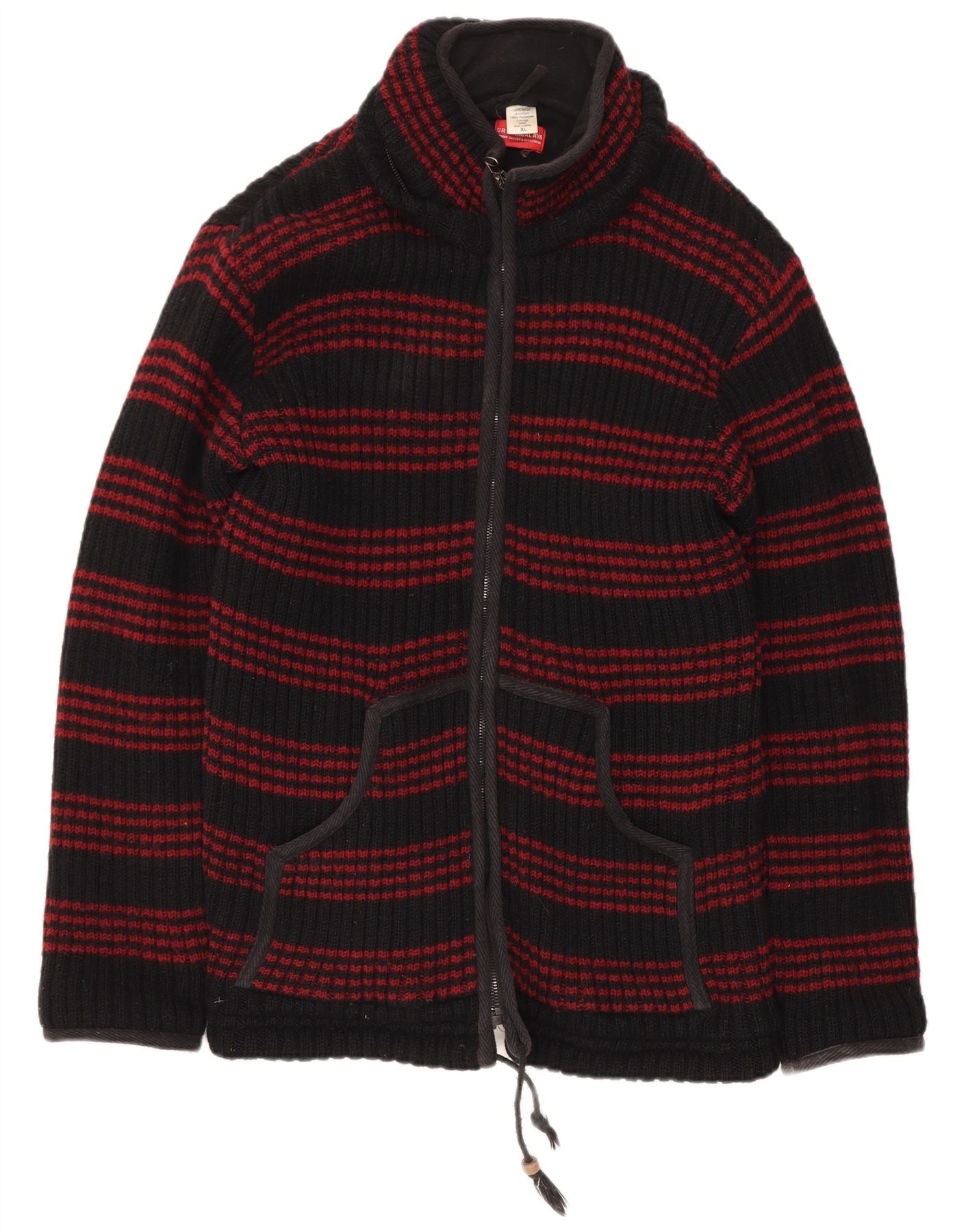 HIMALAYA Suéter tipo cárdigan para hombre XL Lana a rayas negras