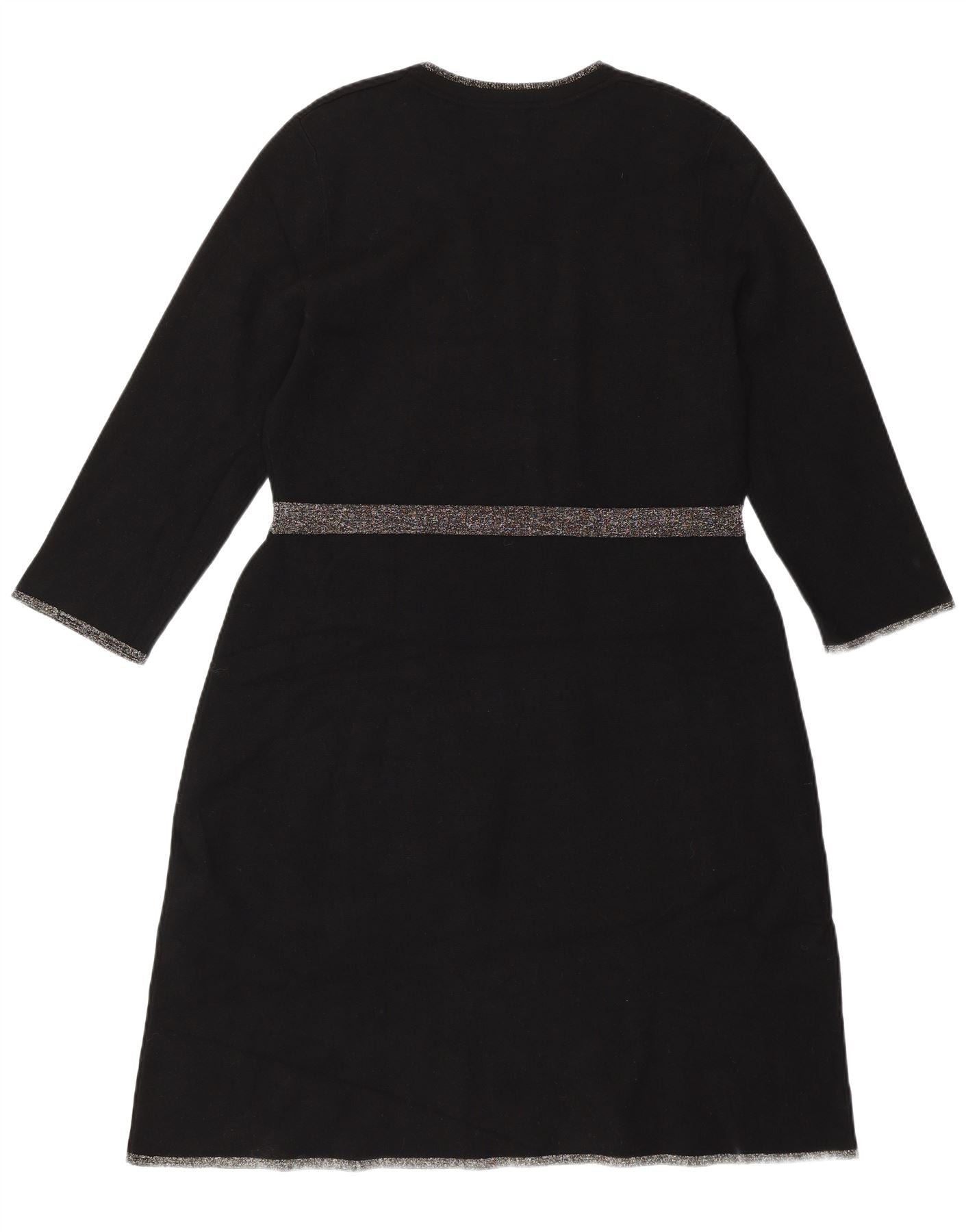- Descripción de IA: Este vestido recto de Hobbs para mujer está confeccionado con un suave tejido de punto de viscosa negro. Presenta un clásico escote redondo y elegantes mangas 3/4. Sutiles detalles de purpurina adornan el escote, los puños y la cintura, añadiendo un toque de brillo. El corte regular ofrece una silueta cómoda y favorecedora. Este vestido tipo jersey combina comodidad con un estilo sofisticado, perfecto para diversas ocasiones.