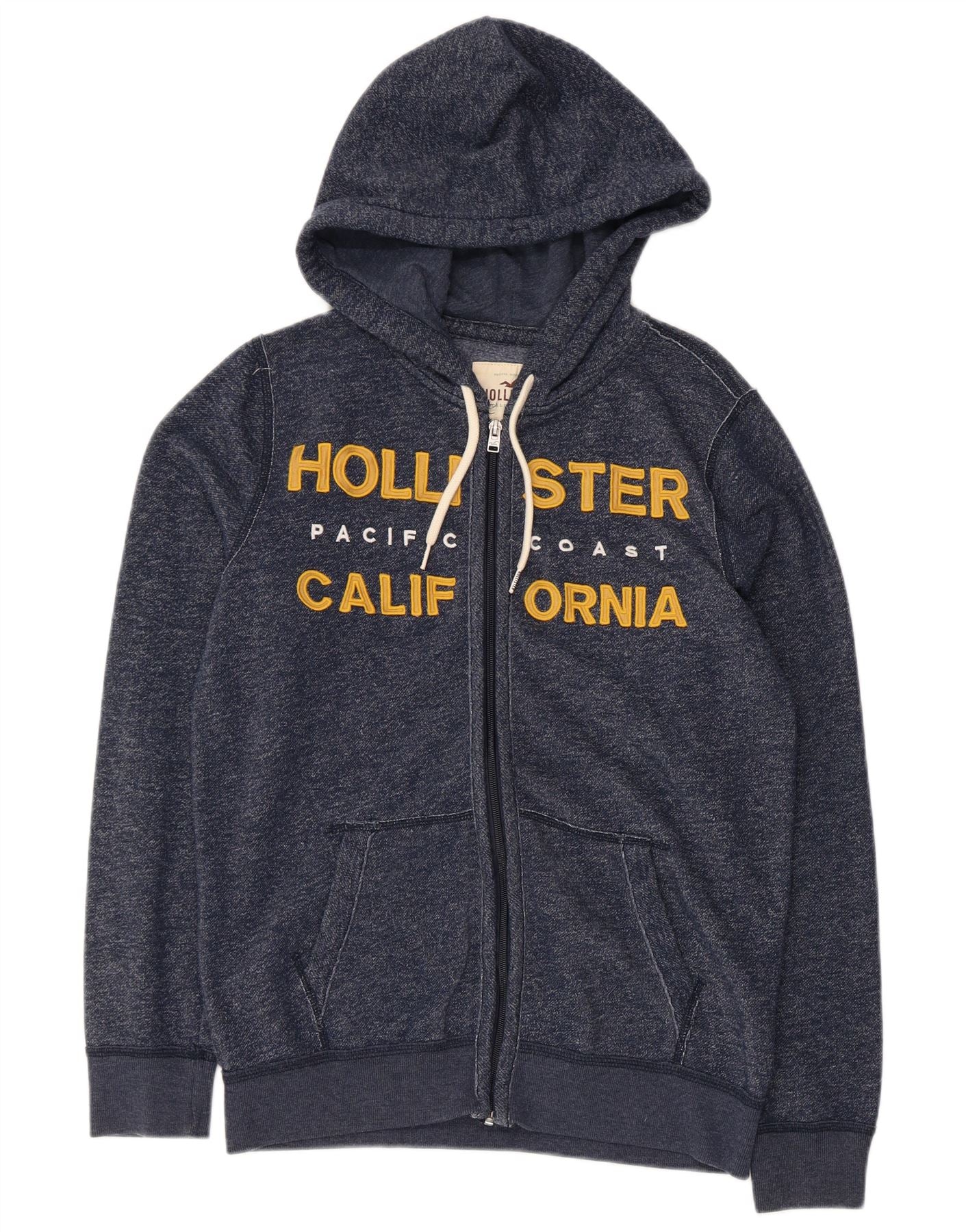 HOLLISTER Suéter con capucha y cremallera gráfica para hombre pequeño de algodón moteado en azul marino