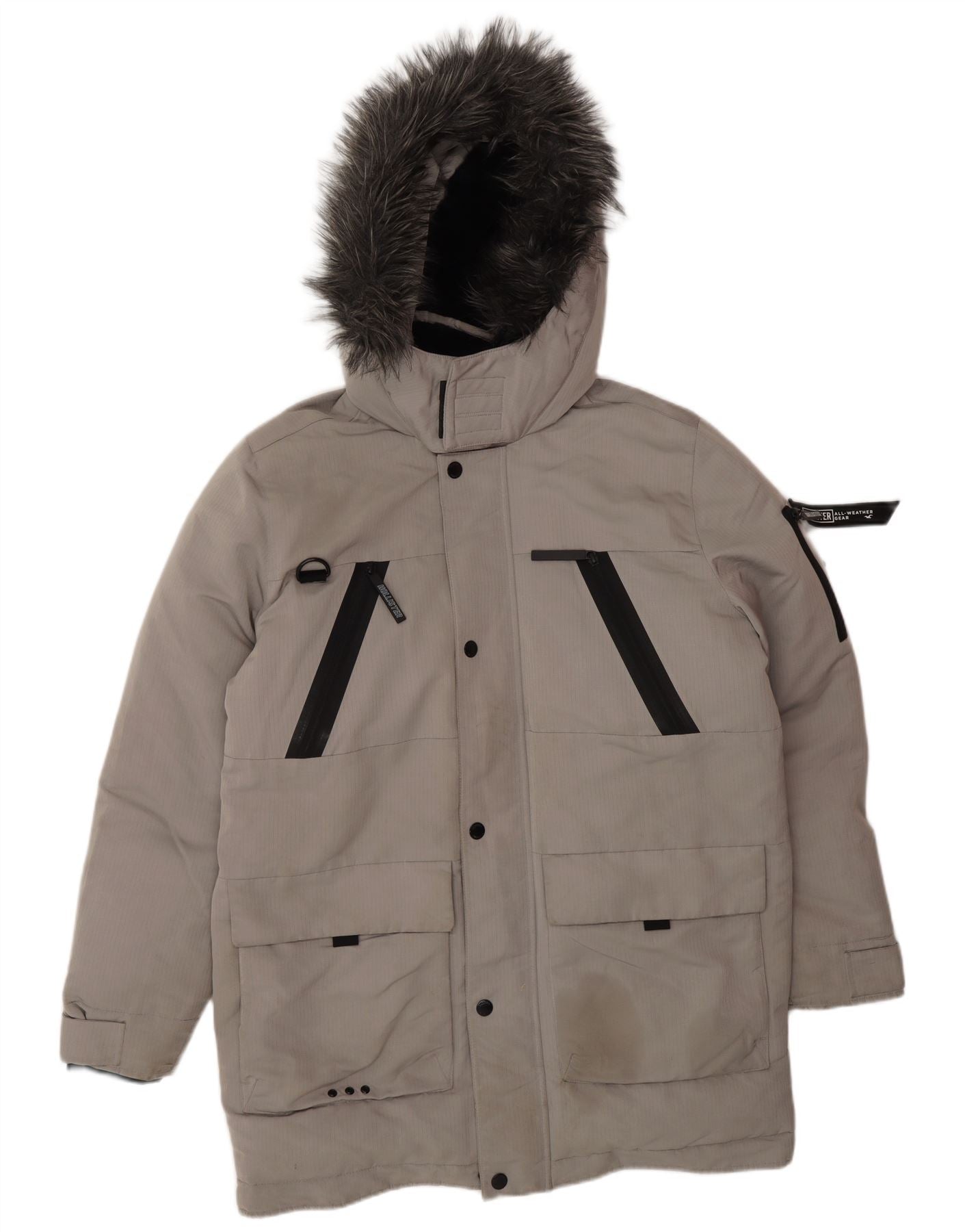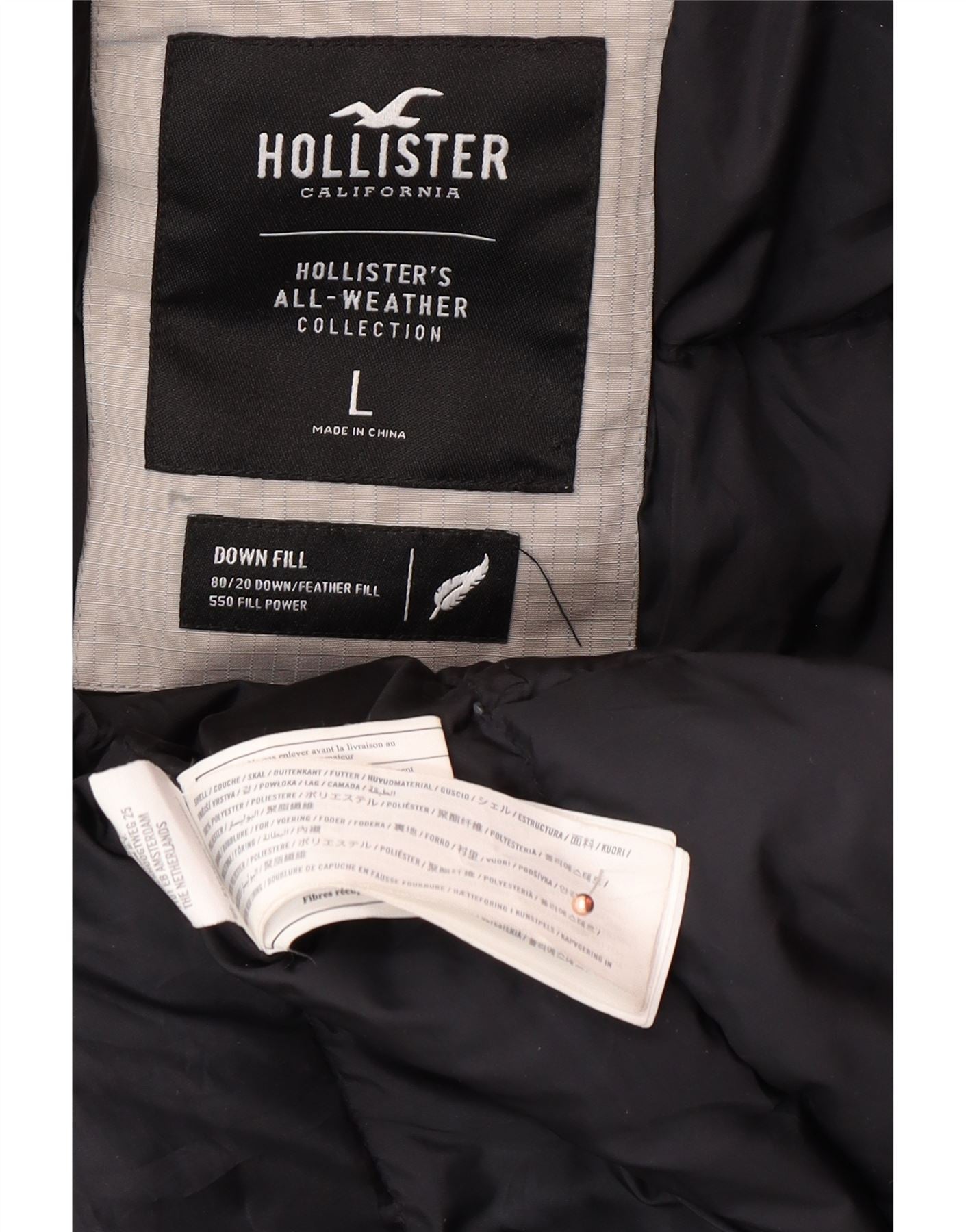HOLLISTER Chaqueta acolchada con capucha para hombre Reino Unido 40 Poliéster gris grande