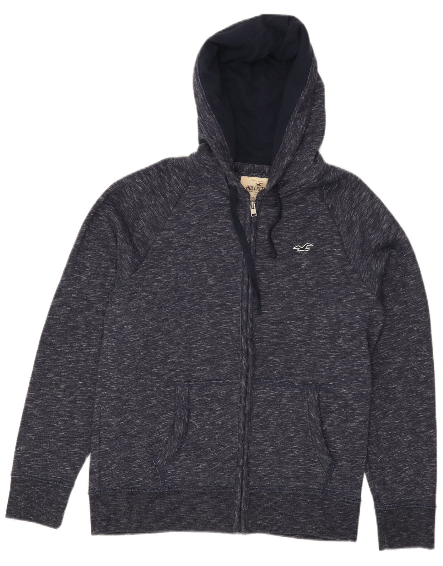 HOLLISTER Suéter con capucha y cremallera para hombre pequeño de algodón moteado en azul marino