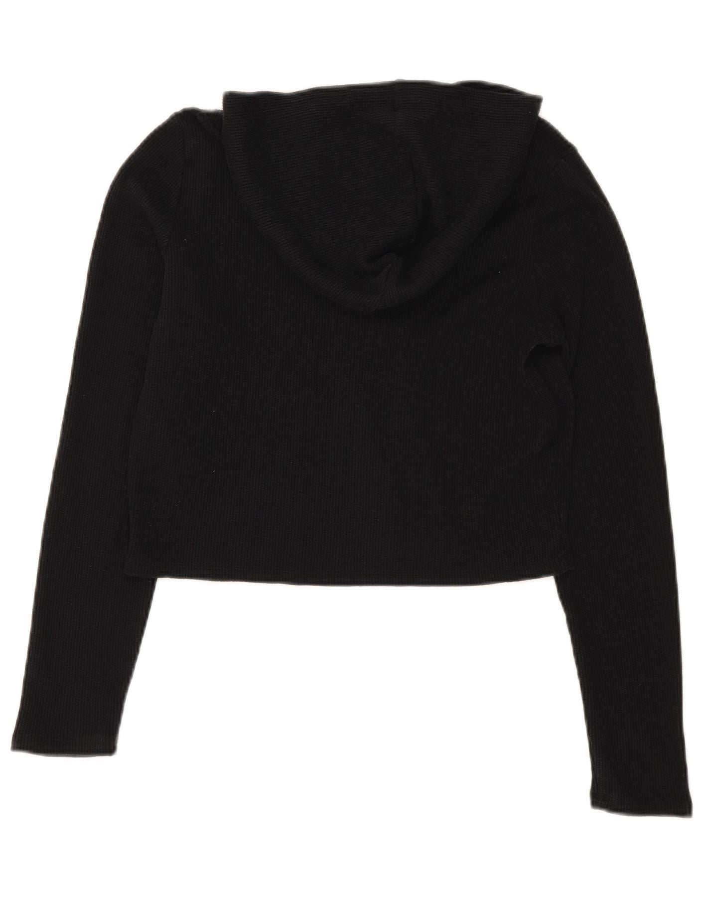 HOLLISTER Womens Crop Zip Hoodie Sweater UK 16 Large Black Cotton