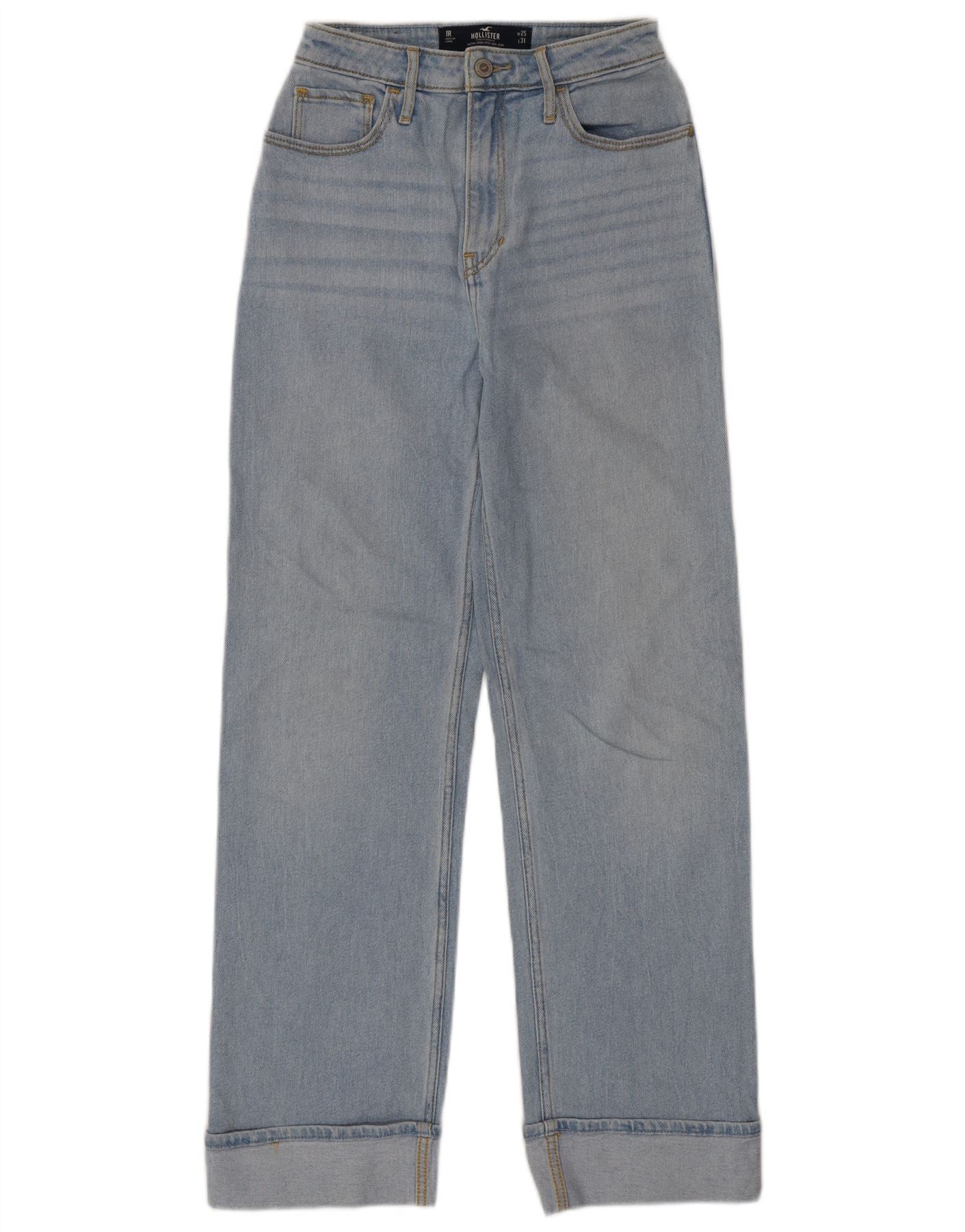 HOLLISTER Vaqueros rectos de talle alto para mujer W25 L31 Algodón azul