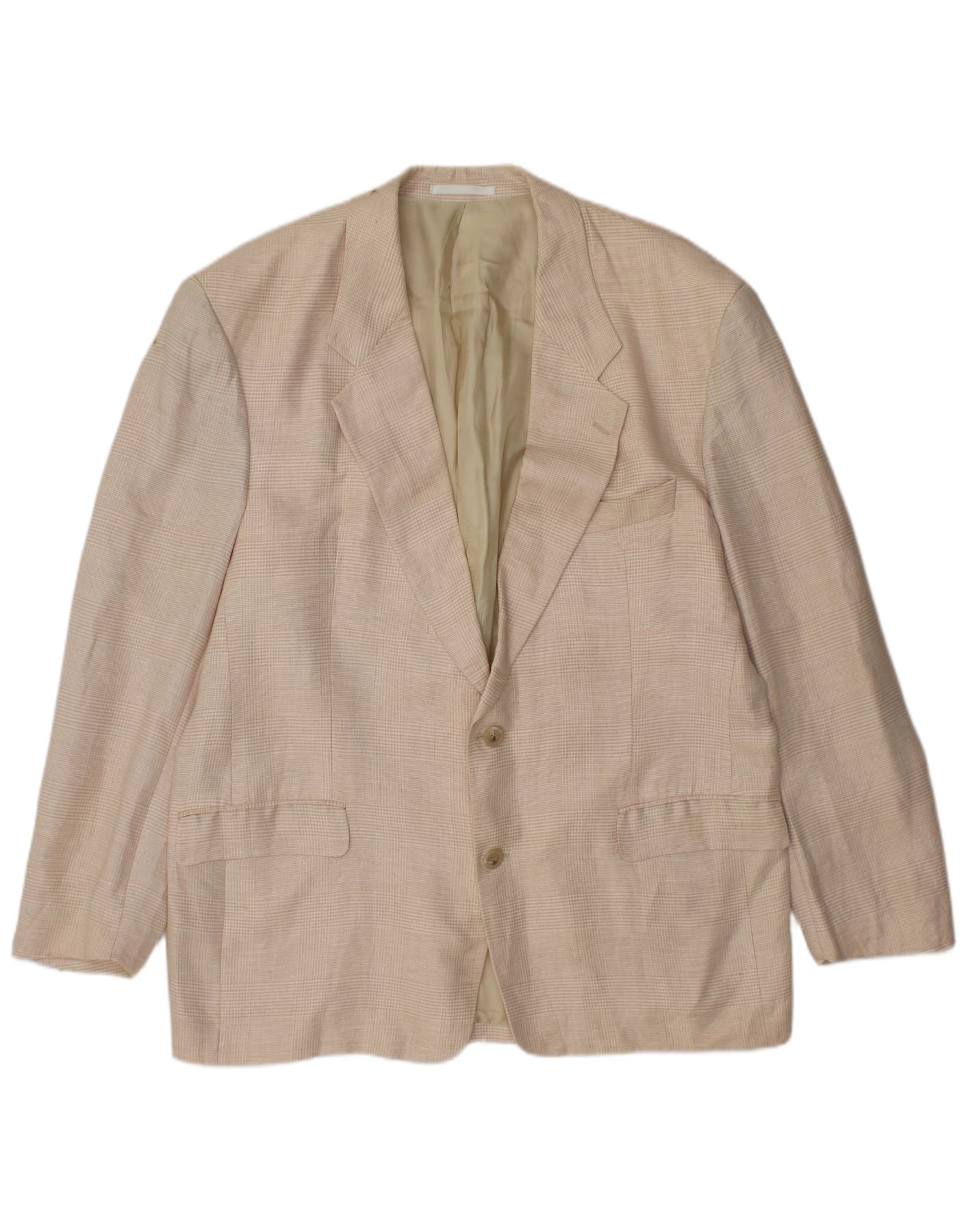 HUGO BOSS Chaqueta tipo blazer de 2 botones para hombre EU 56 3XL Lino a cuadros beige