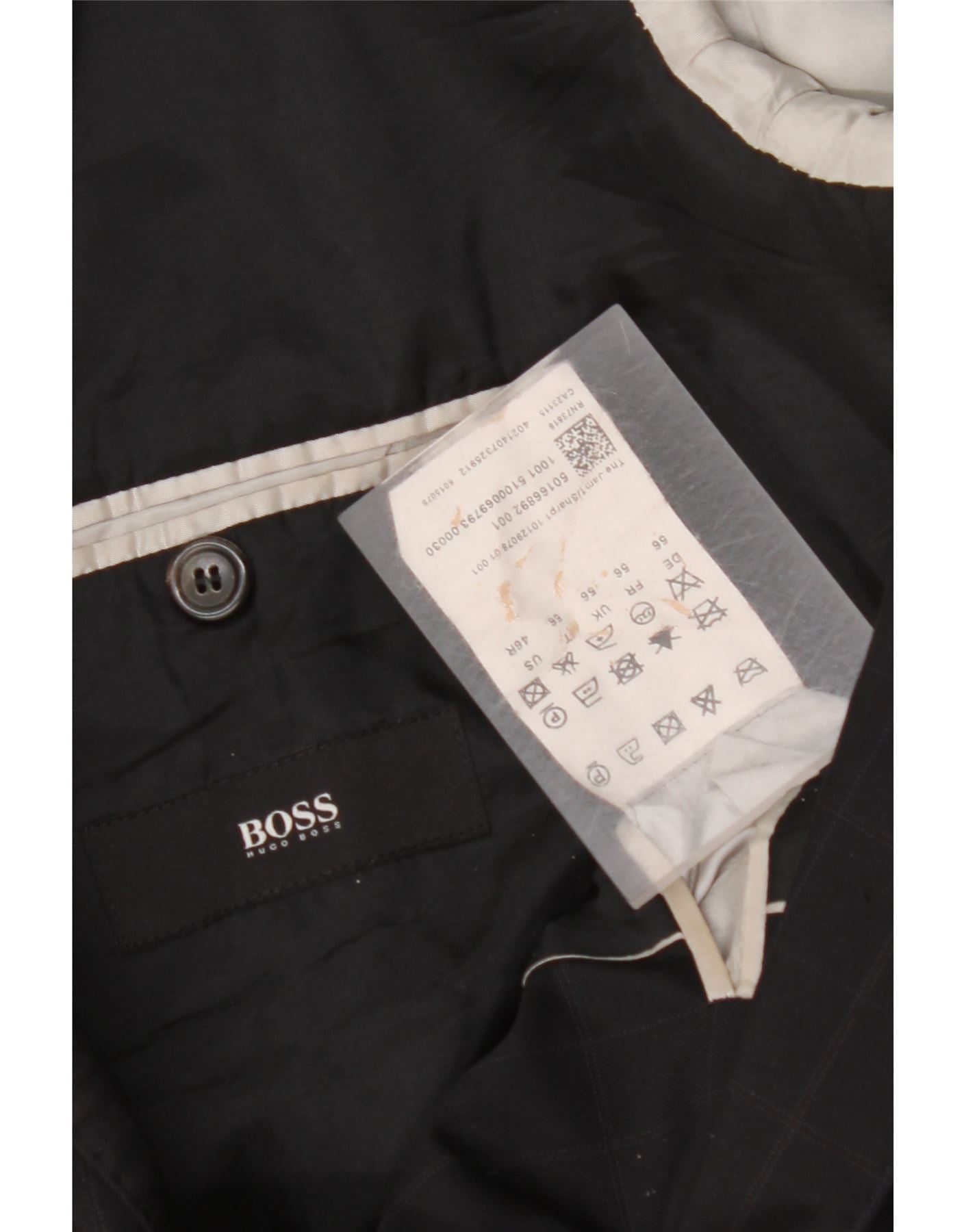 HUGO BOSS Mens 2 Button Blazer Jacket EU 56 3XL Black Check Virgin Wool