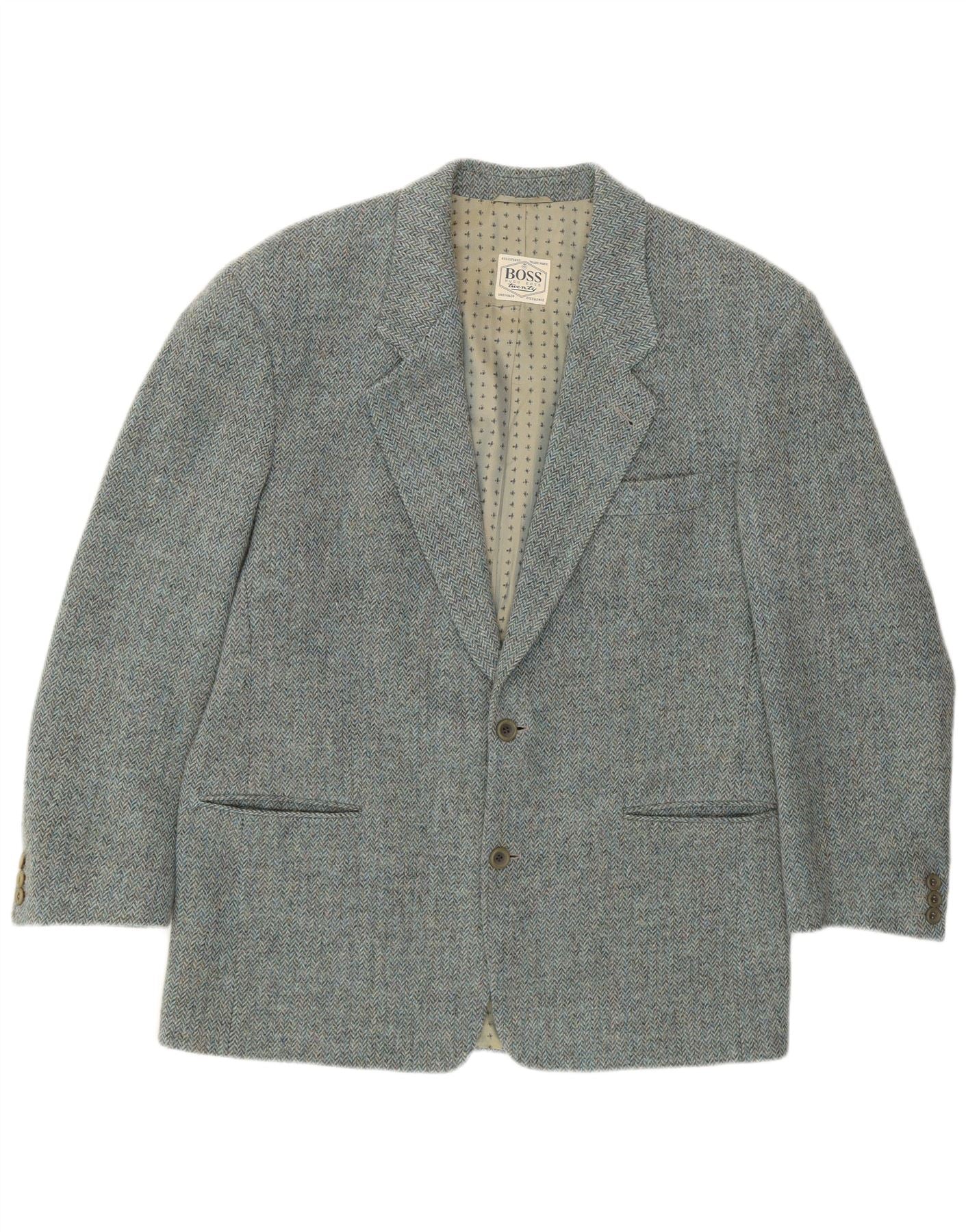 HUGO BOSS Chaqueta blazer de 2 botones para hombre IT 52 XL Lana virgen en espiga azul