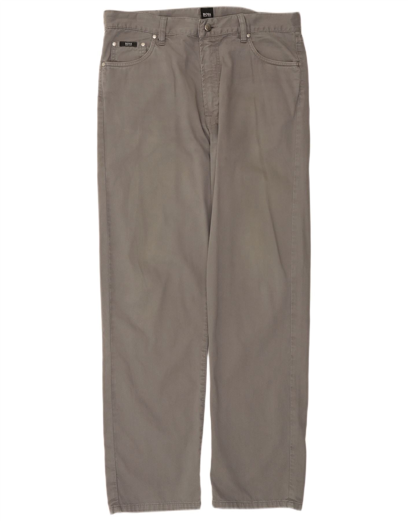 HUGO BOSS Pantalones informales rectos Arkansas para hombre W36 L32 Algodón gris