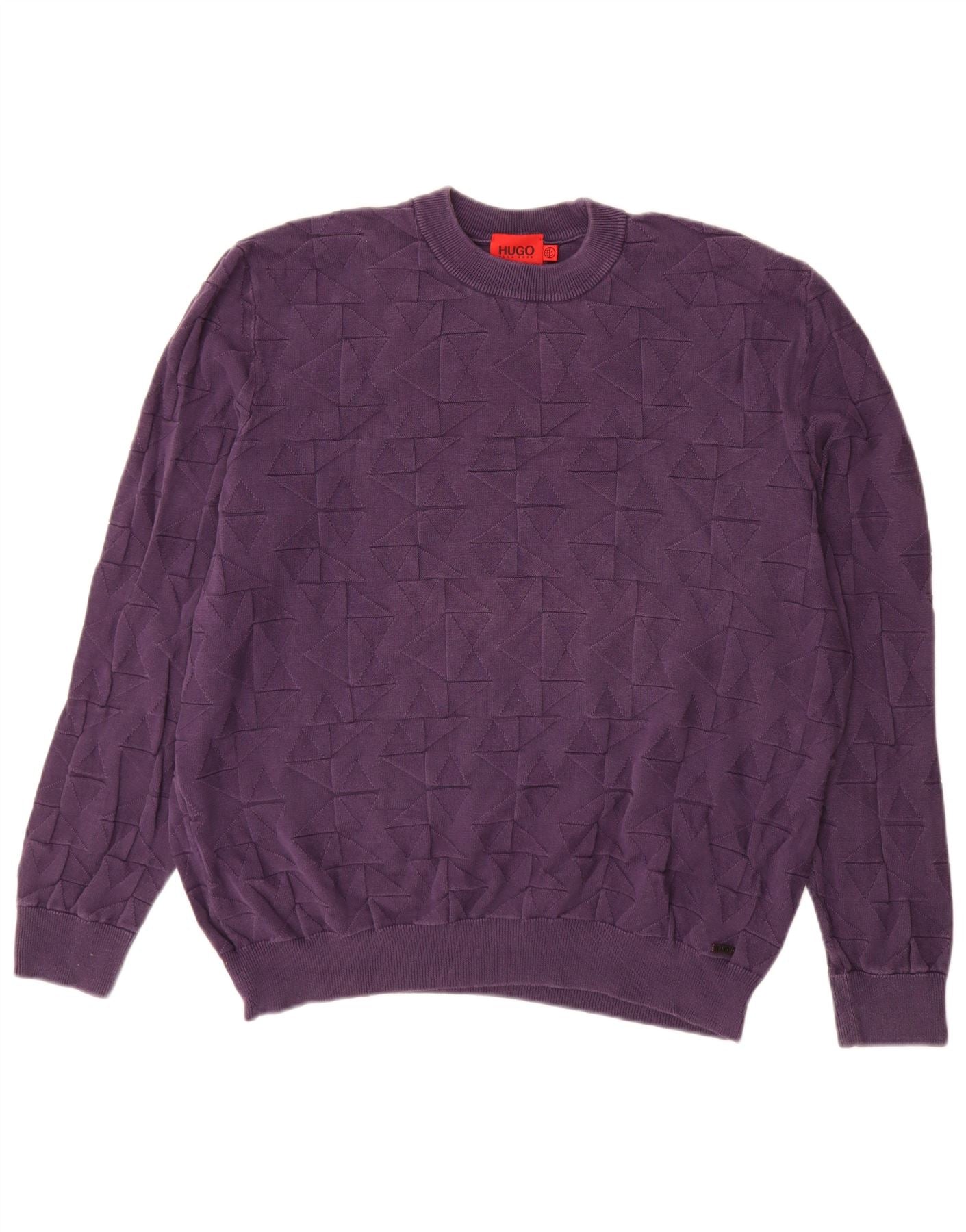 HUGO BOSS Jersey de cuello redondo para hombre 2XL Algodón geométrico morado