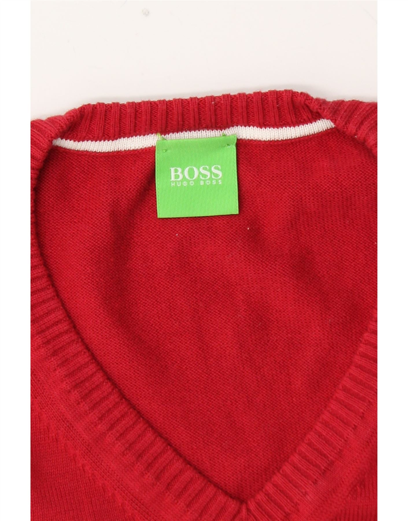 HUGO BOSS Jersey con cuello en V y gráfico para hombre en bloques de color rojo grande