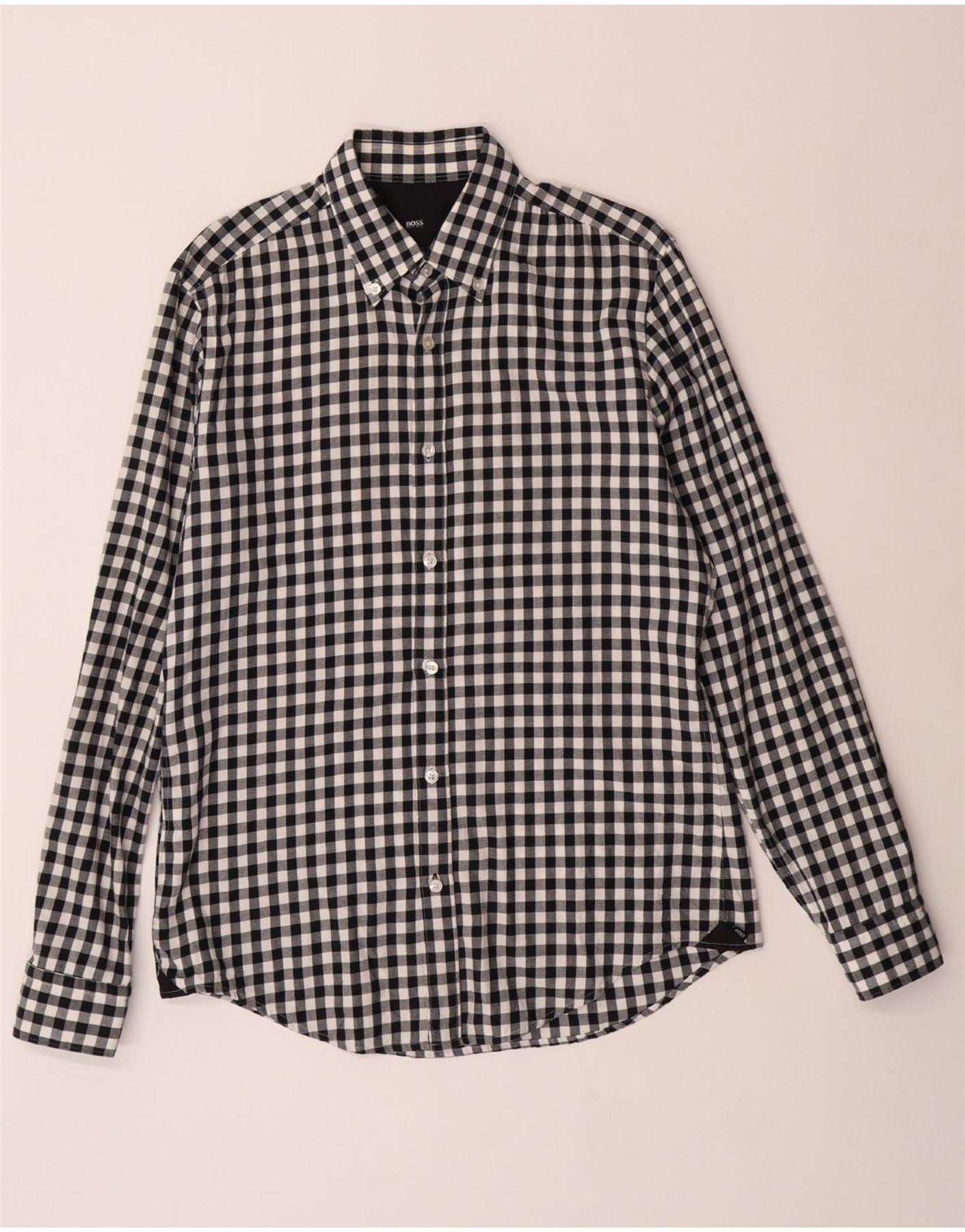 Camisa de franela de corte slim de algodón a cuadros en negro mediano de HUGO BOSS Hombre