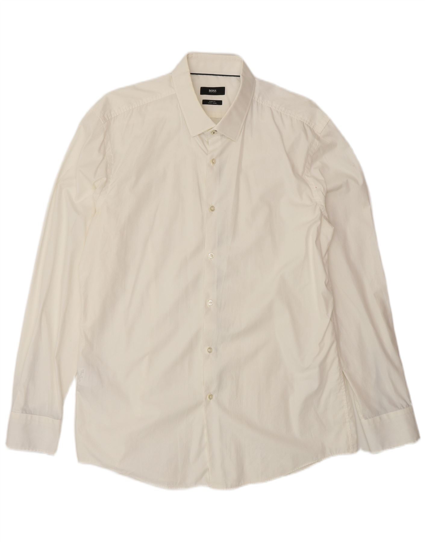 Hugo Boss Camisa Slim Fit para hombre Talla 44 17 1/2 XL Algodón blanco