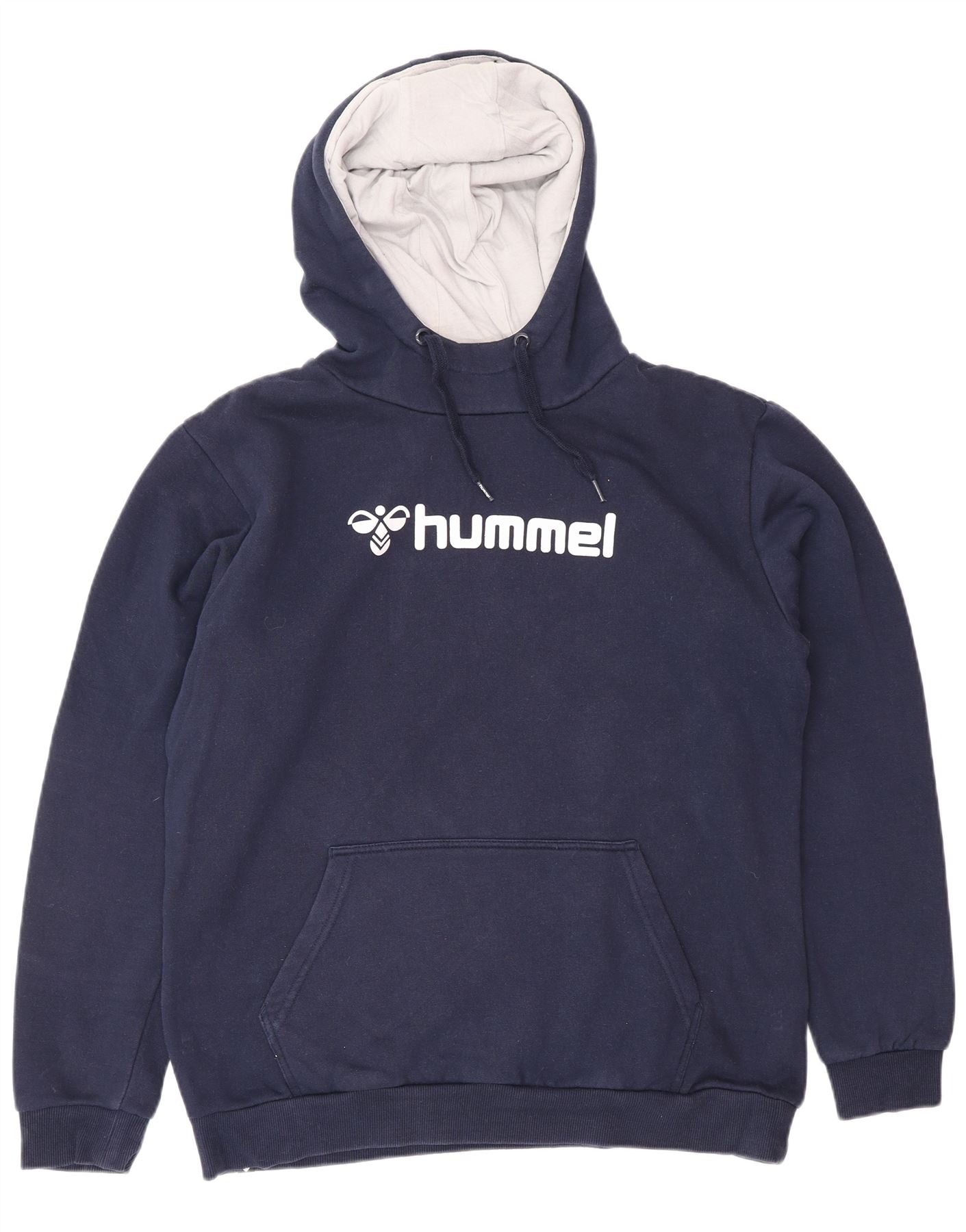 HUMMEL Jersey con capucha gráfica para hombre, tamaño grande, algodón azul marino