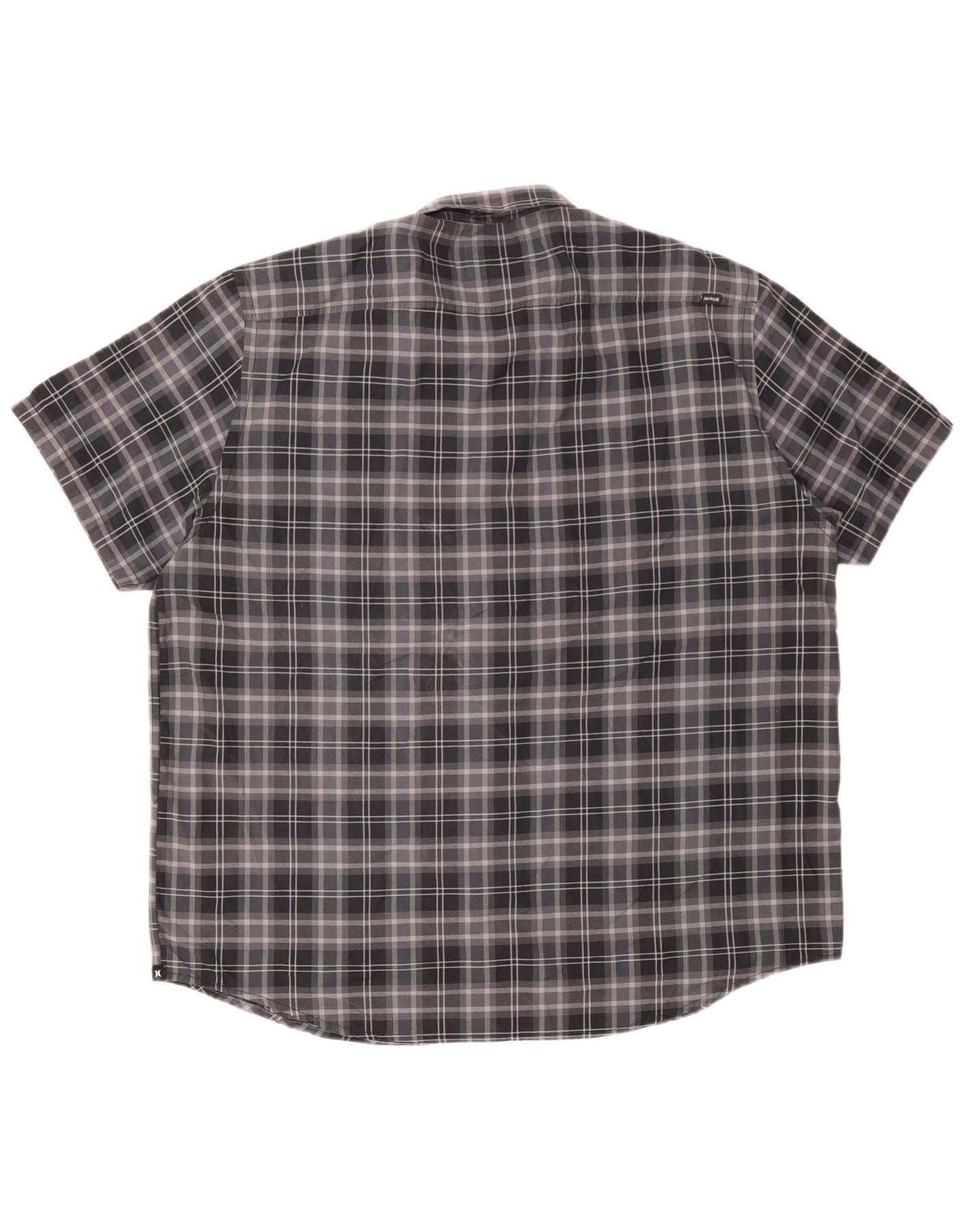 HURLEY Camisa de manga corta para hombre 2XL Algodón a cuadros gris