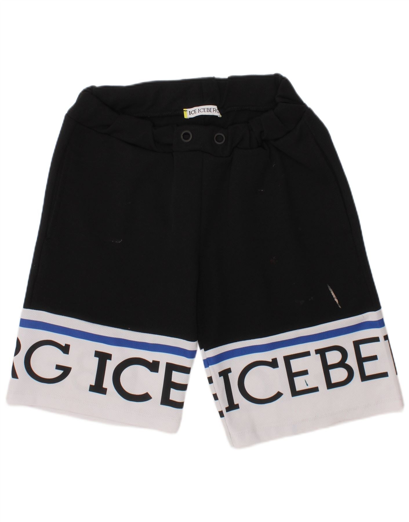 ICEBERG Boys Graphic Sport Shorts 8-9 Years Black Colourblock Polyester
