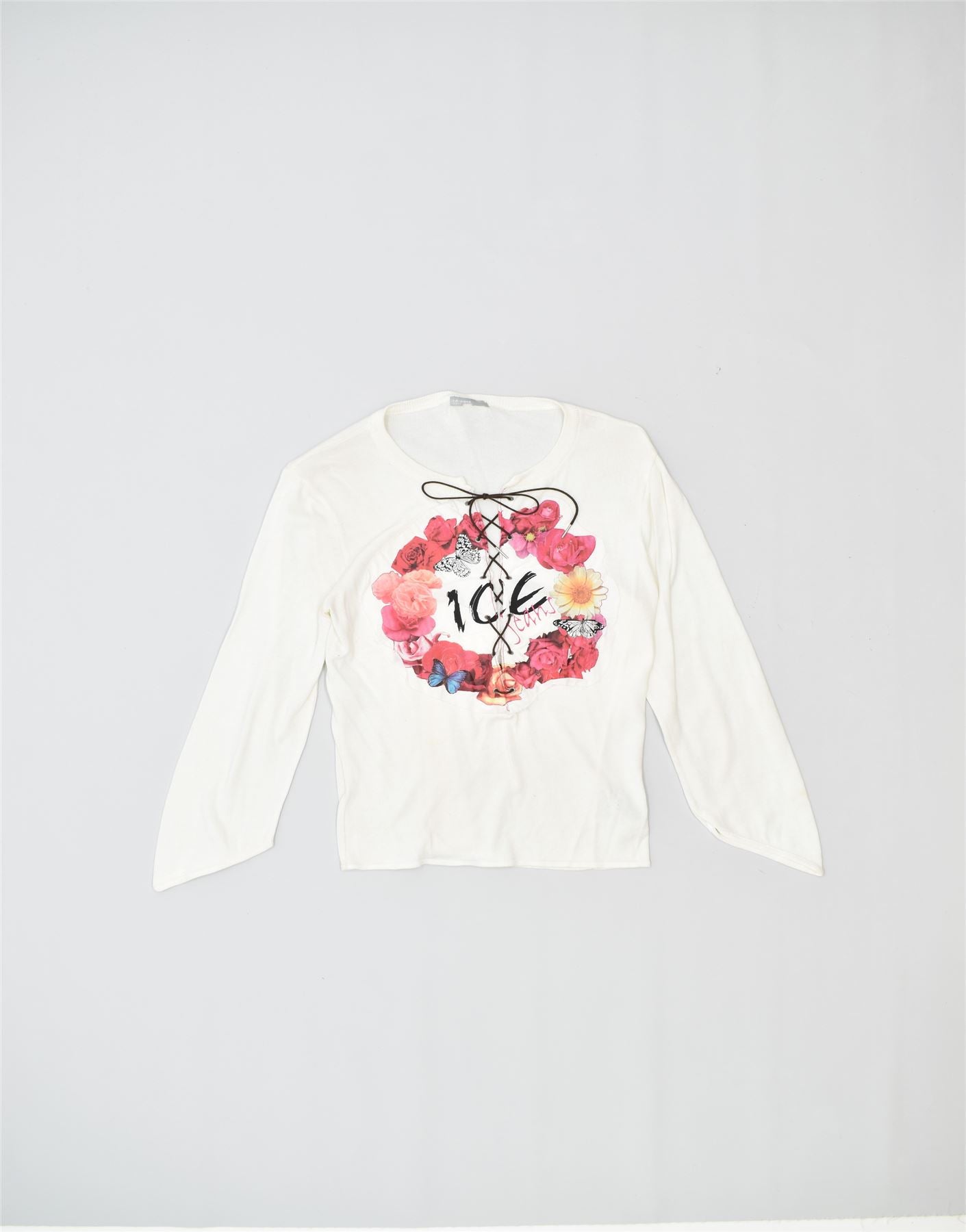 ICEBERG Suéter gráfico con cuello redondo para mujer UK 10 Small White Floral