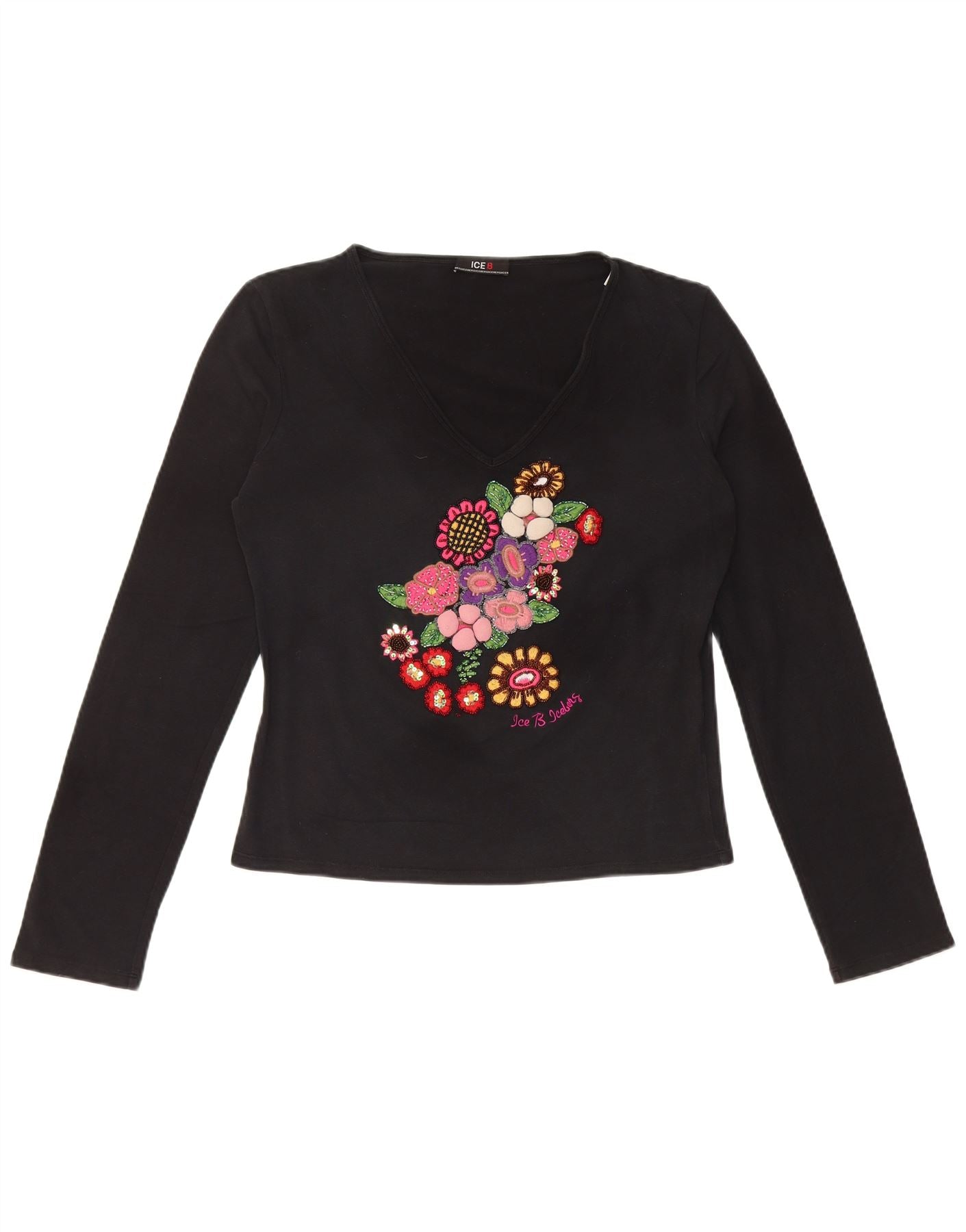 ICEBERG Top corto con gráfico para mujer, manga larga, IT 46, grande, negro, floral