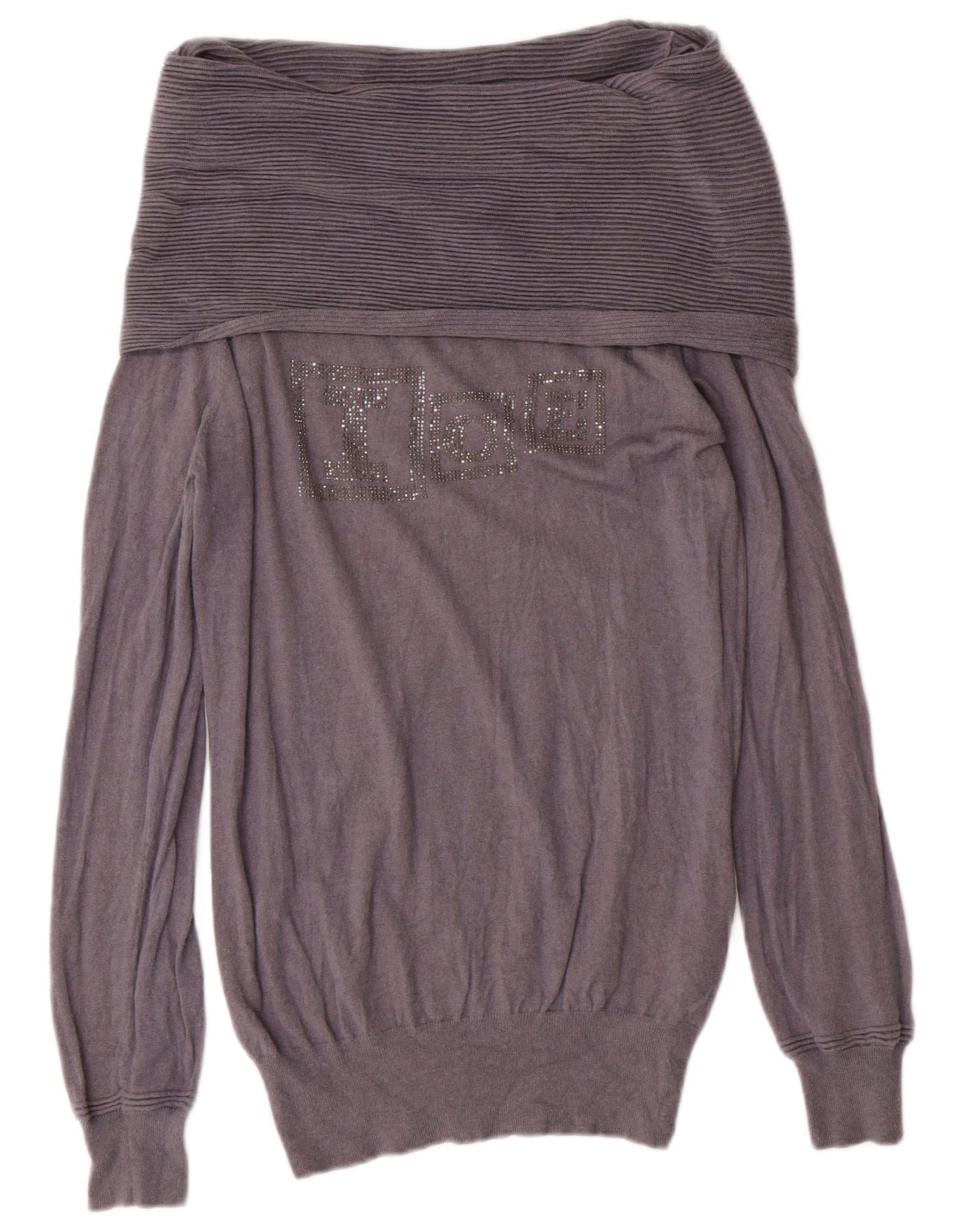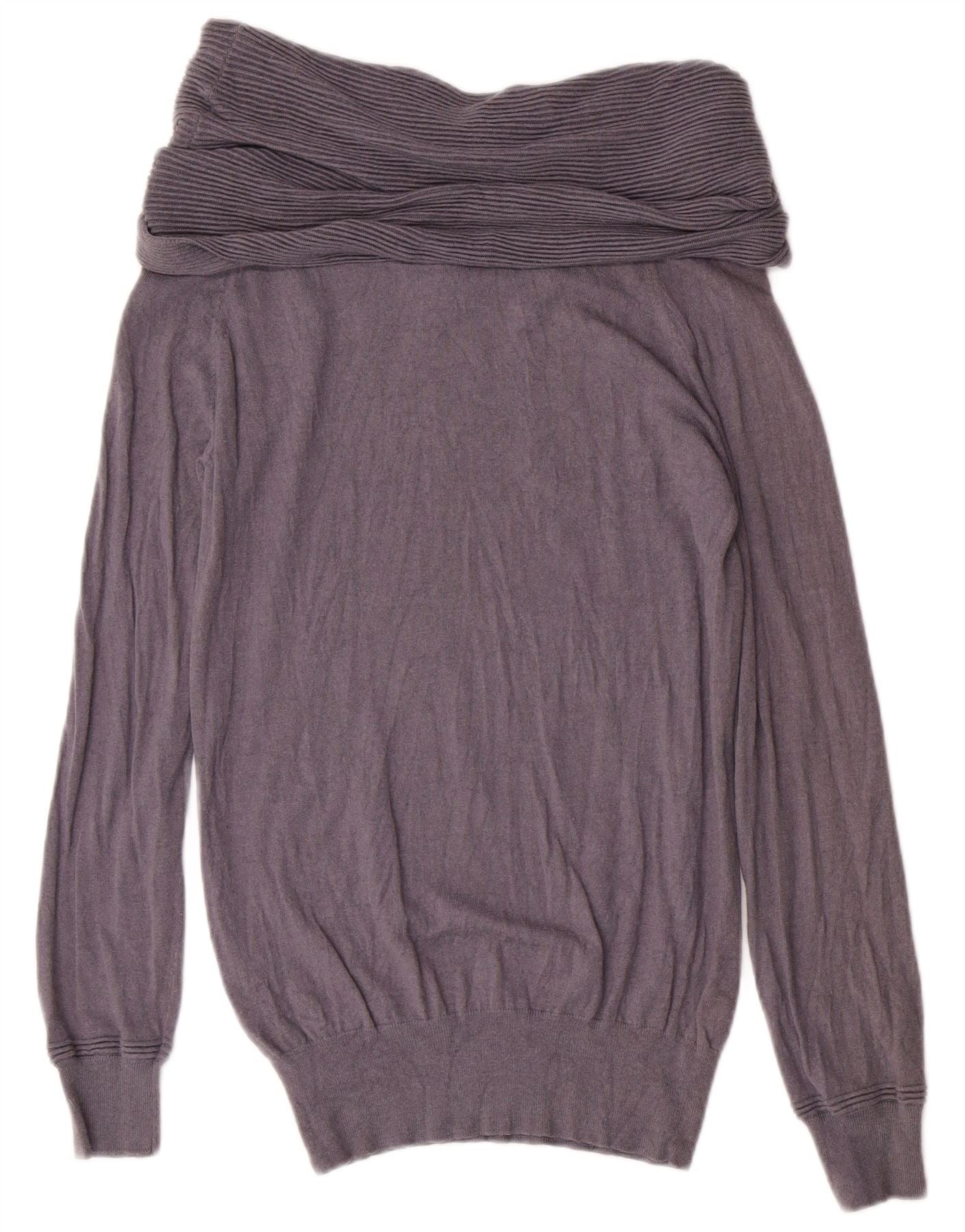 ICEBERG Womens Graphic Roll Neck Jumper Sweater UK 10 Small Purple Viscose