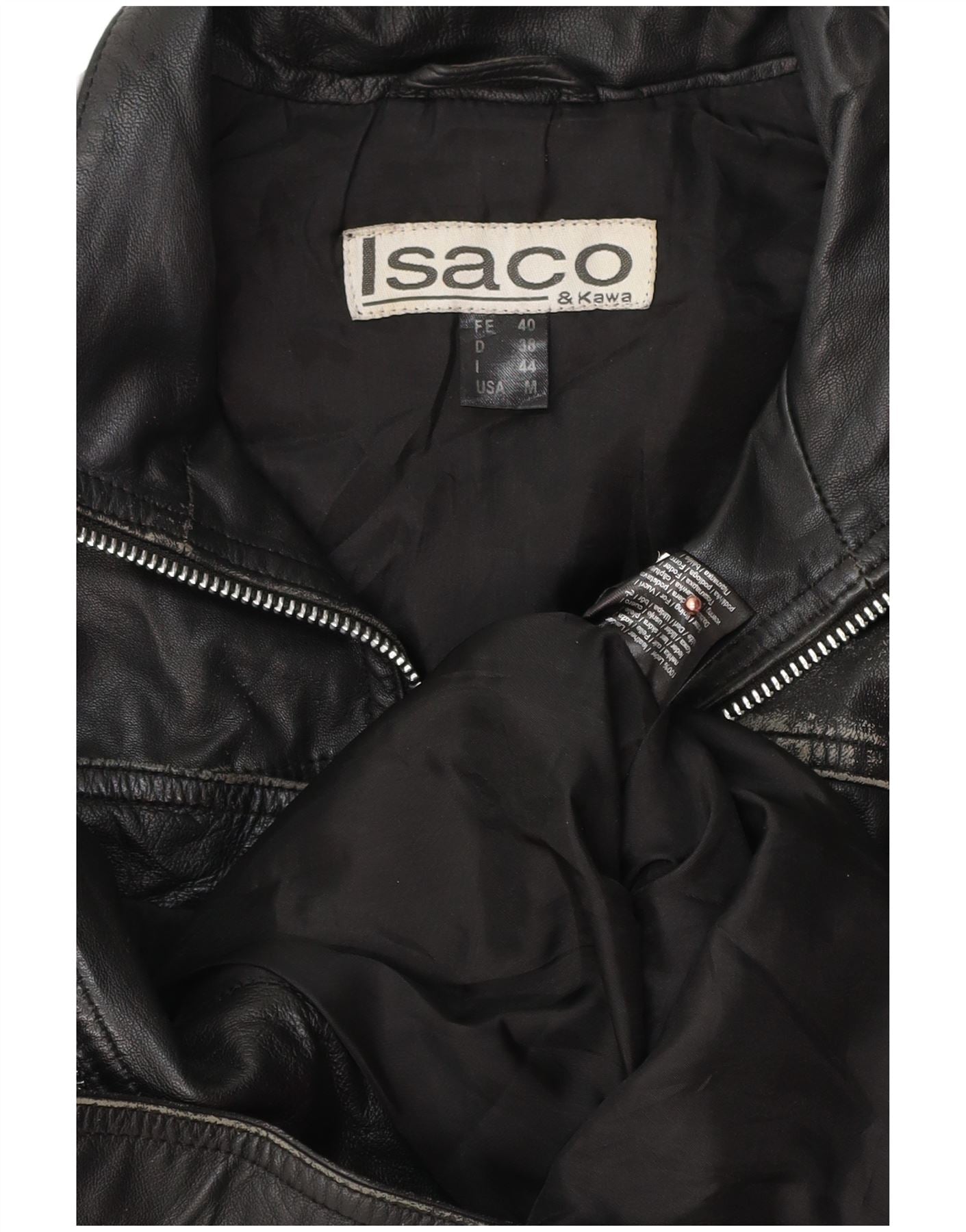 Isaco & Kawa Chaqueta de cuero motociclista para mujer IT 44 Cuero negro mediano