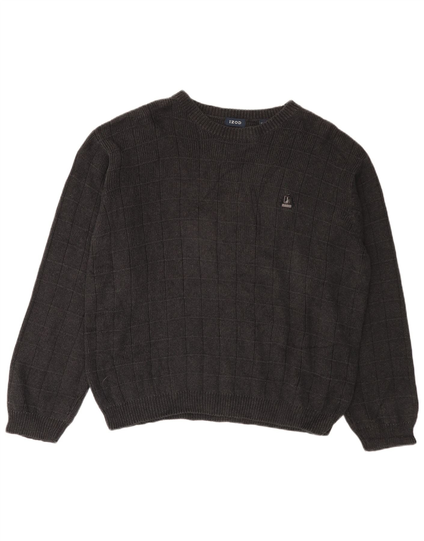 IZOD Jersey con cuello barco para hombre, jersey de algodón a cuadros gris grande