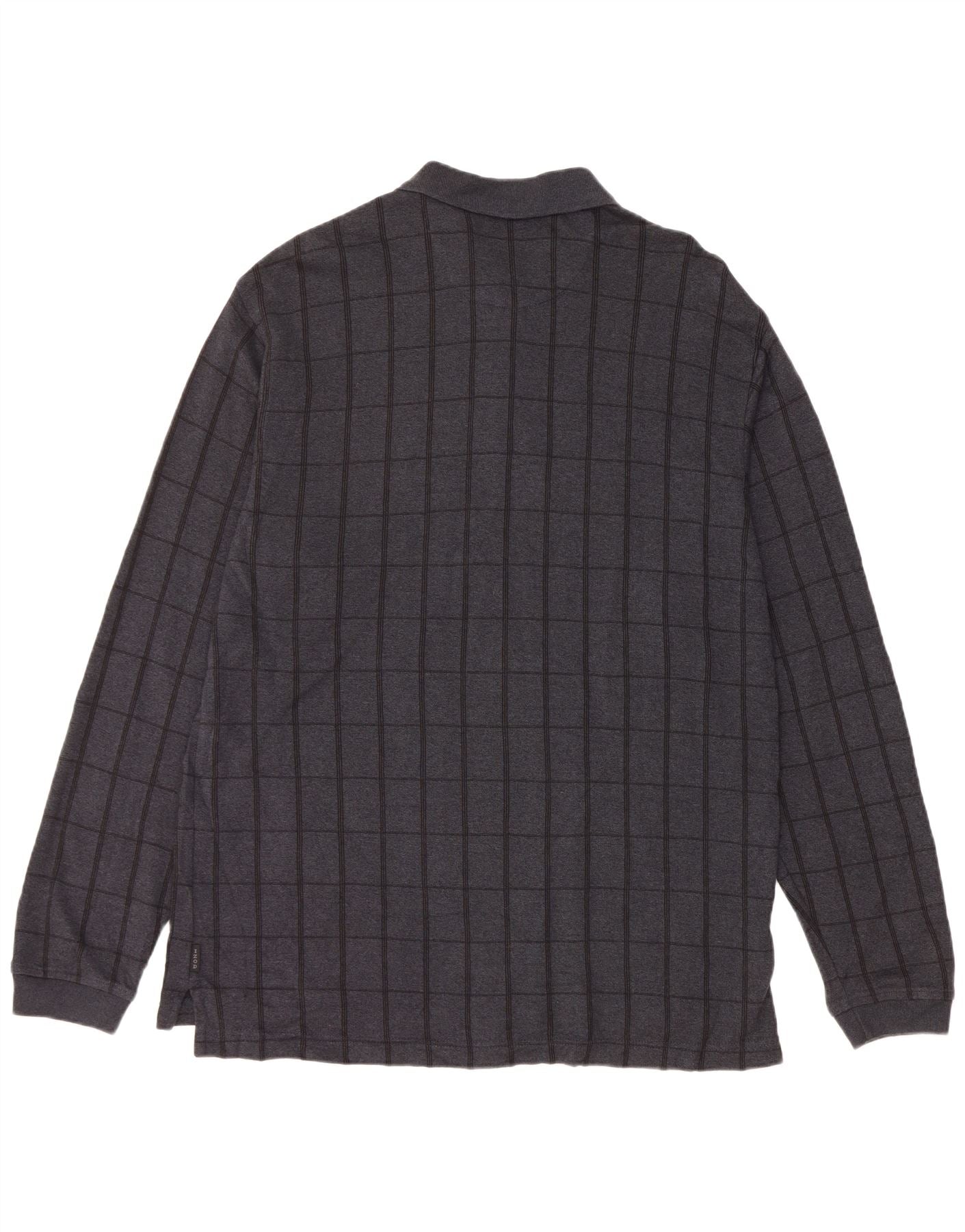 IZOD Polo de manga larga para hombre de algodón a cuadros gris grande