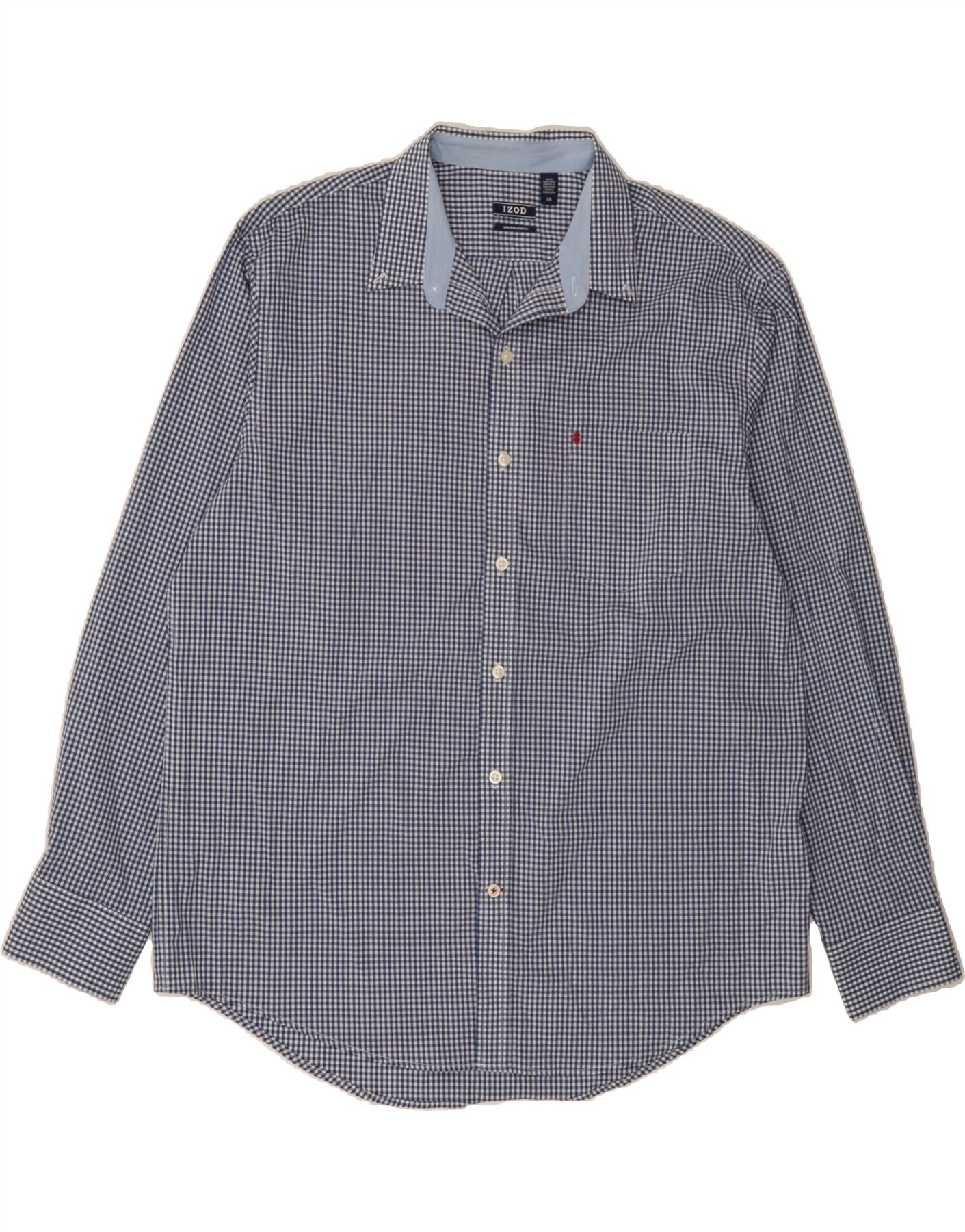 IZOD Mens Shirt Large Blue Gingham Cotton