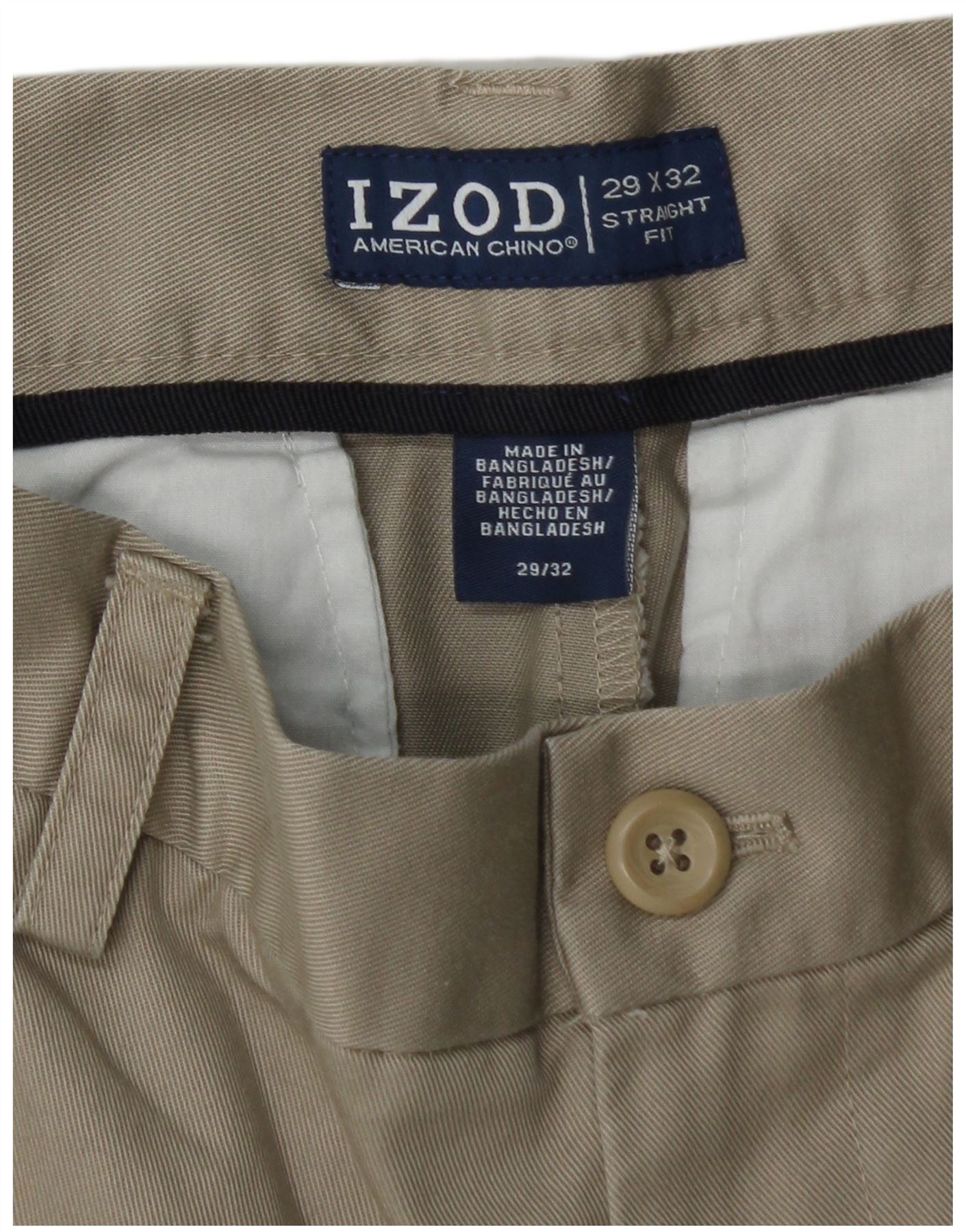 IZOD Pantalón chino recto para hombre W29 L32 Algodón beige