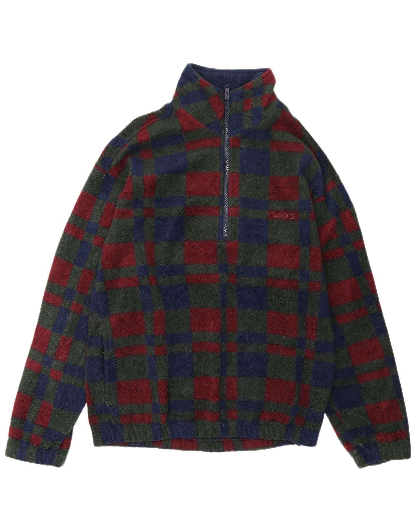 IZOD Jersey de forro polar con cuello y cremallera para hombre, tamaño pequeño, poliéster a cuadros multicolor
