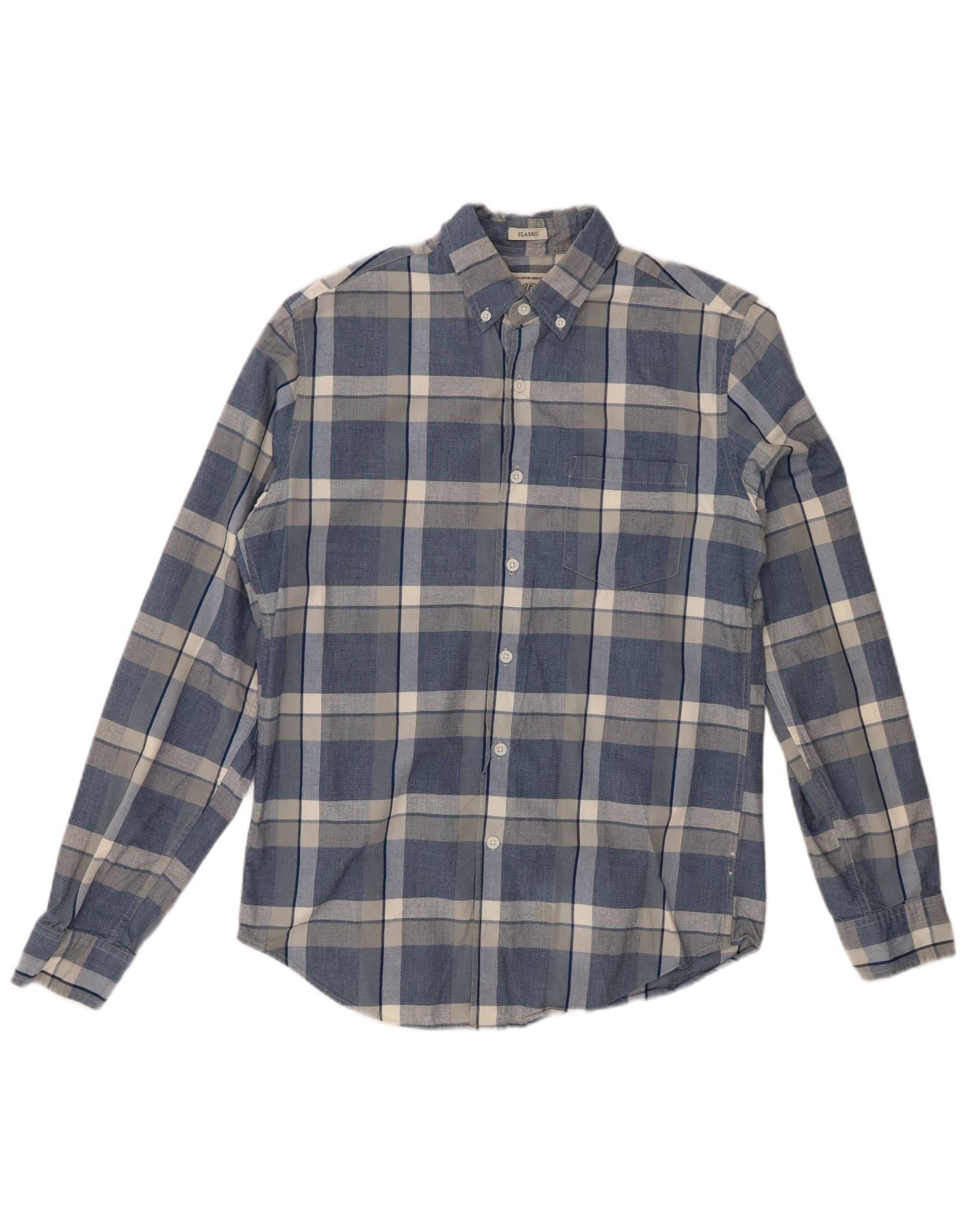 J. CREW Camisa de corte clásico para hombre de algodón a cuadros azul pequeño