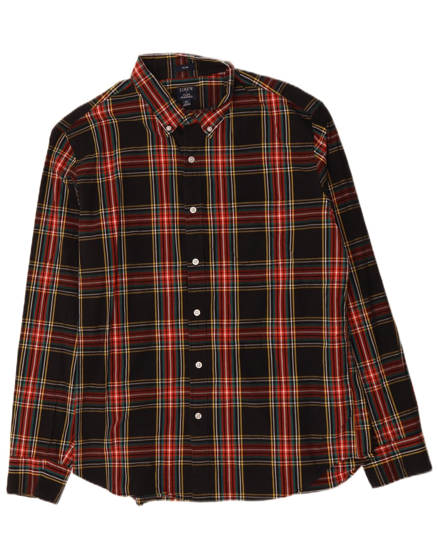 J. CREW Camisa ajustada lavada flexible para hombre XL Algodón a cuadros negros