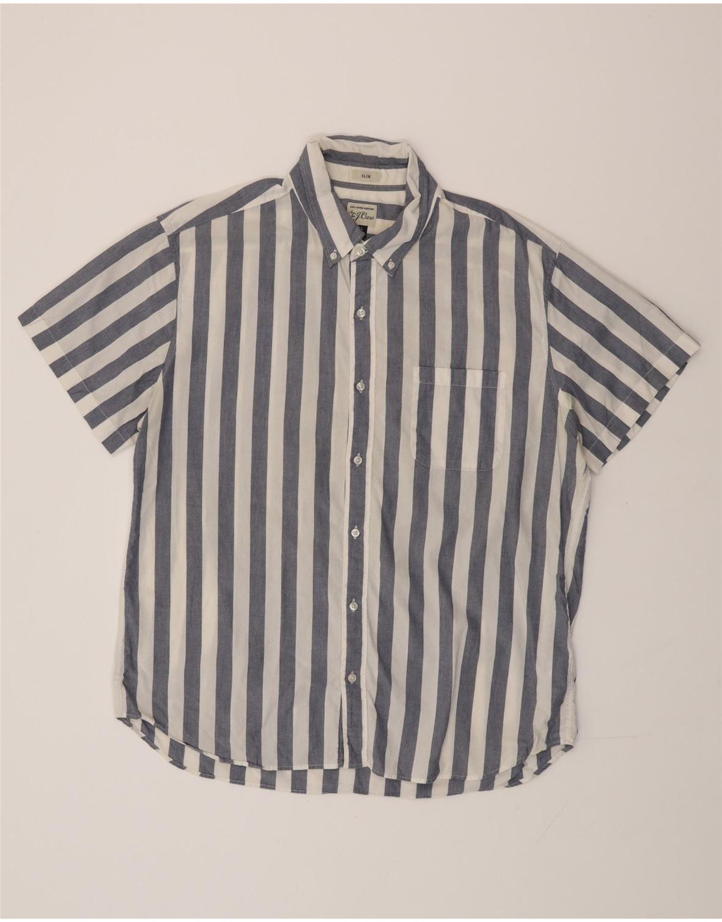 J. CREW Camisa ajustada de manga corta para hombre XL Algodón a rayas azules