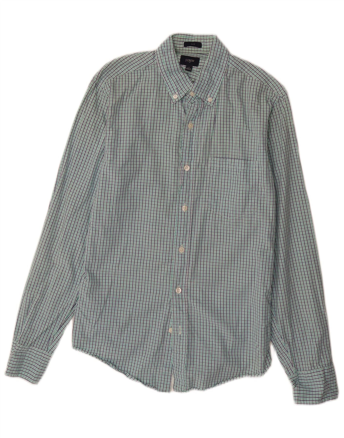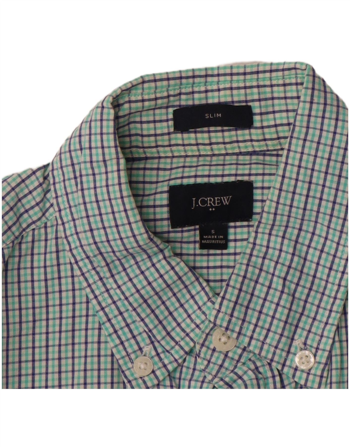 J. CREW Camisa ajustada para hombre de algodón a cuadros verdes pequeños