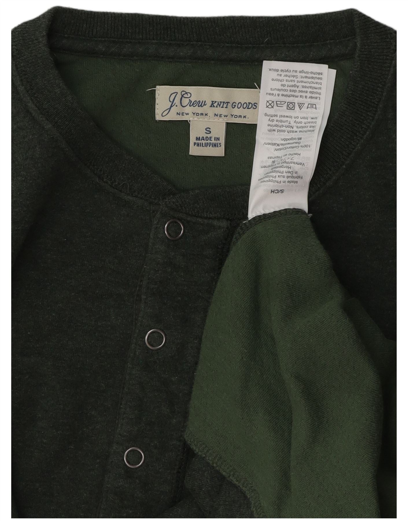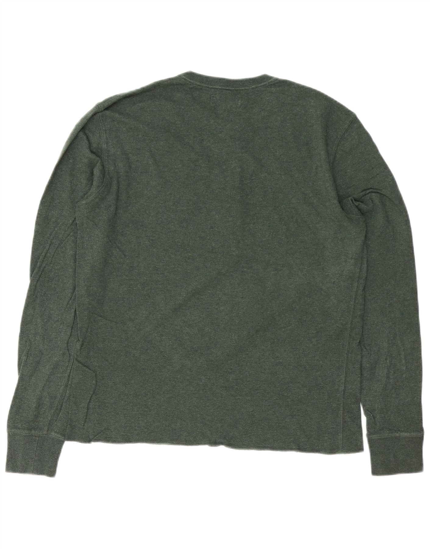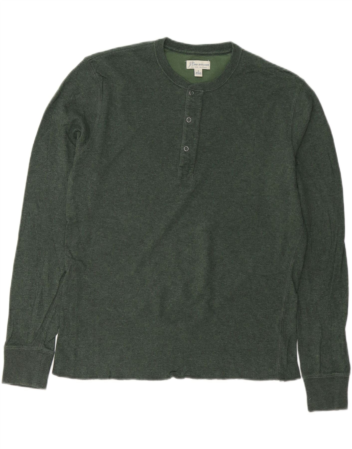 J. CREW Camiseta de manga larga para hombre de algodón verde pequeño