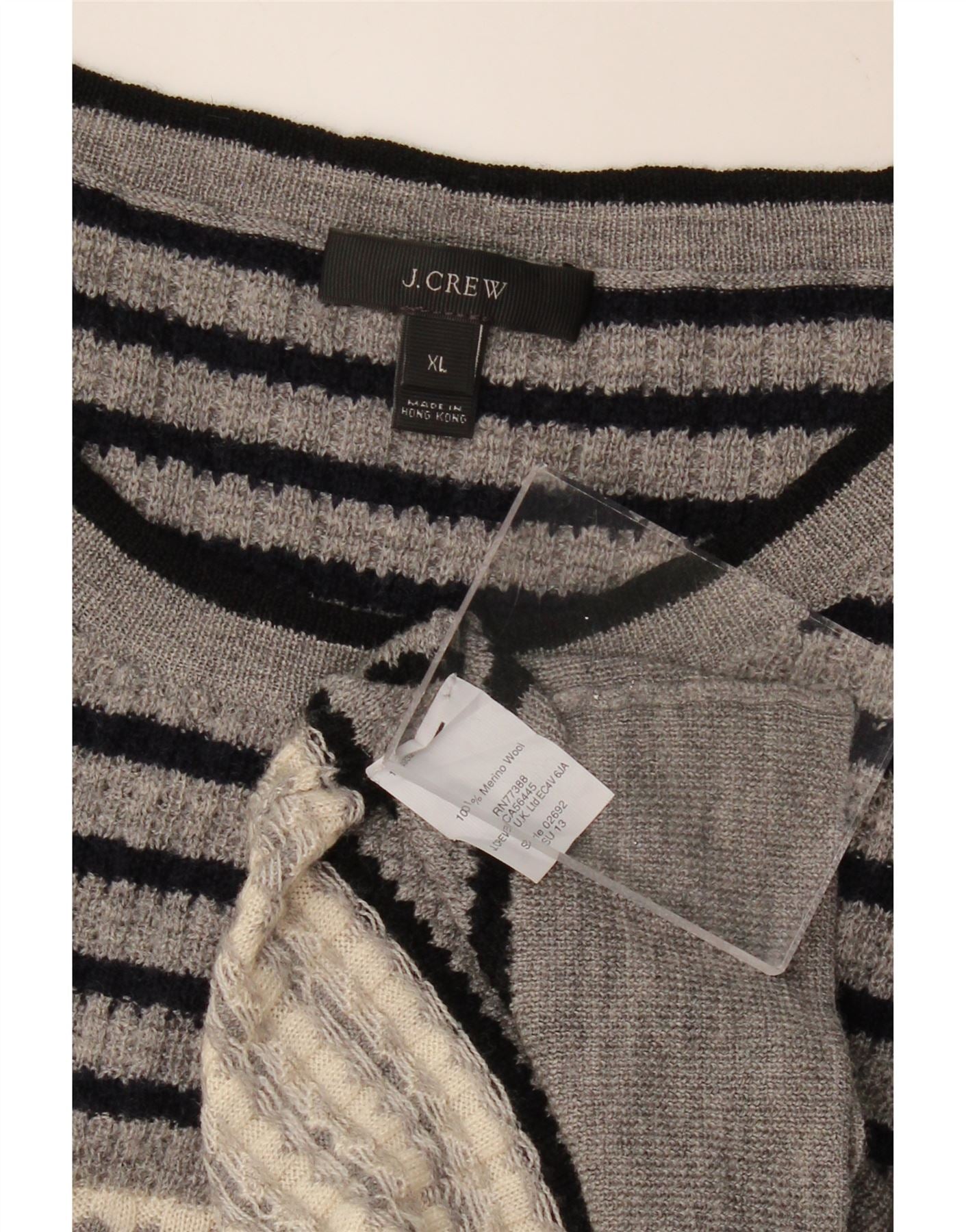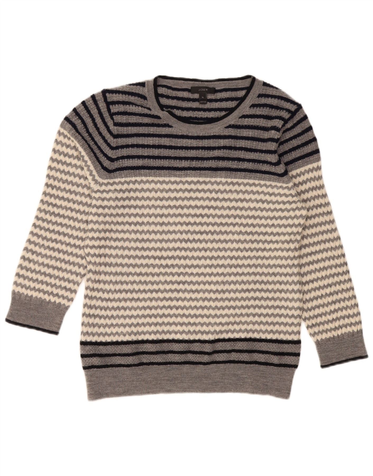 J. CREW Womens Boat Neck Jumper Sweater UK 18 XL Grey Striped Merino Wool