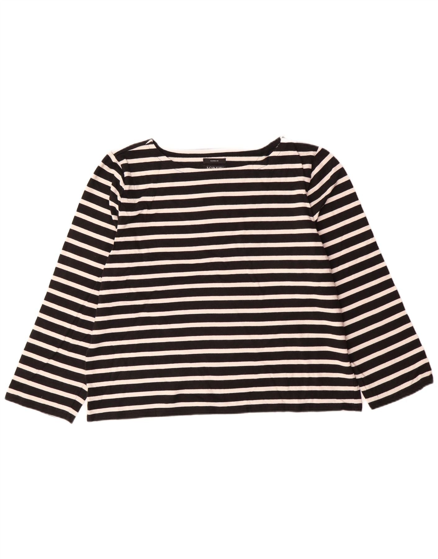 J. CREW Top de corte clásico para mujer, manga 3/4, UK 18 XL, algodón a rayas negras