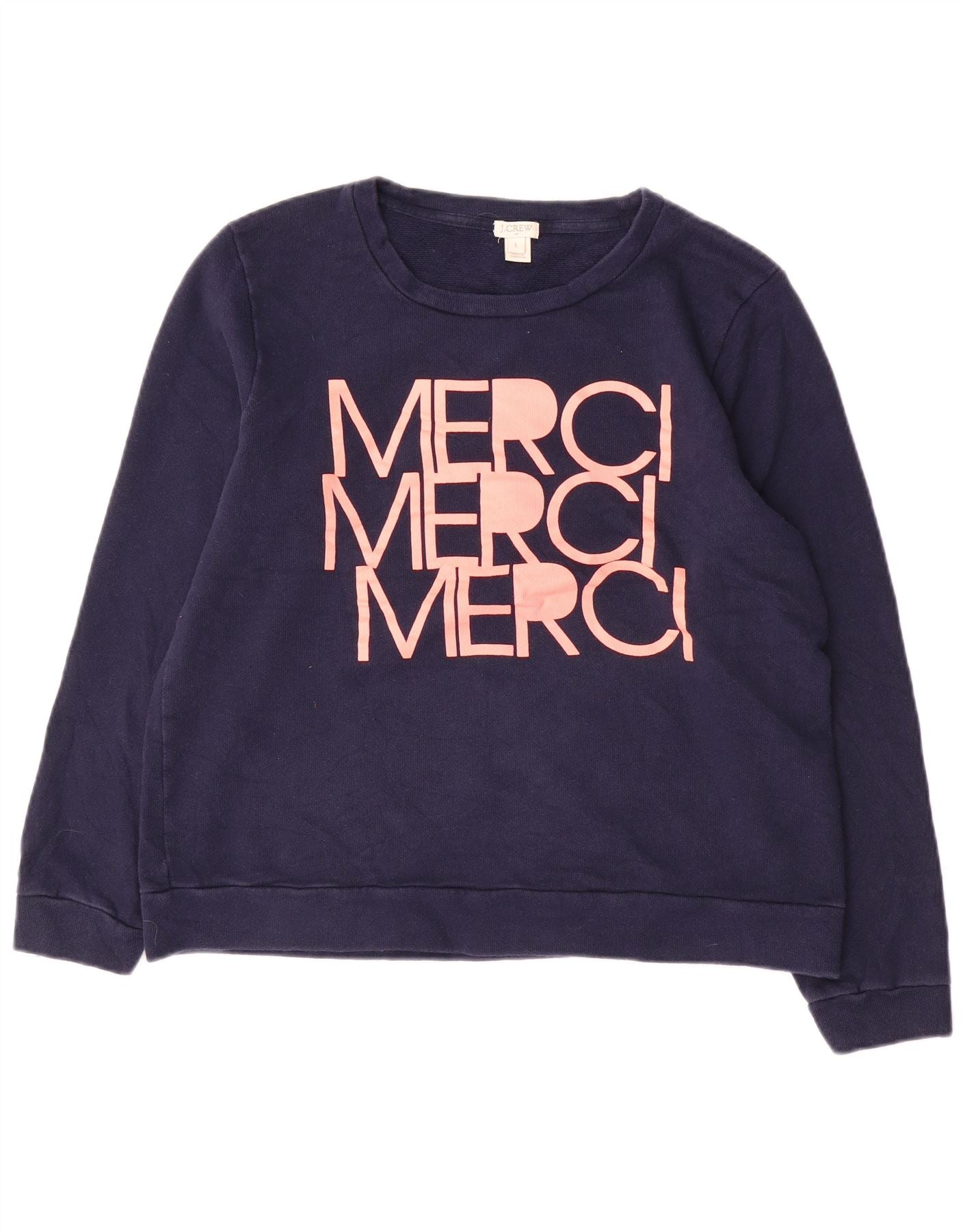 J. CREW Sudadera gráfica para mujer Jumper UK 46 Grande Azul marino Algodón
