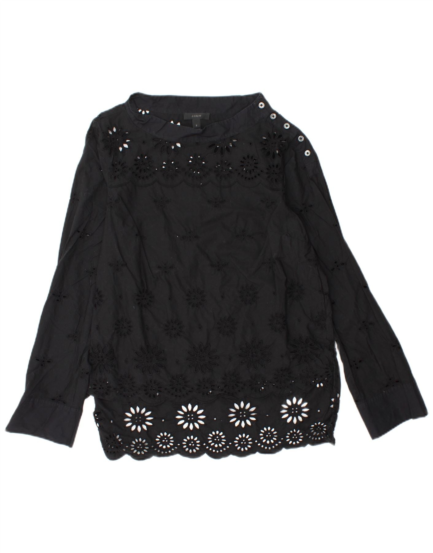 J. CREW Blusa de manga larga para mujer US 2 XS Algodón floral negro