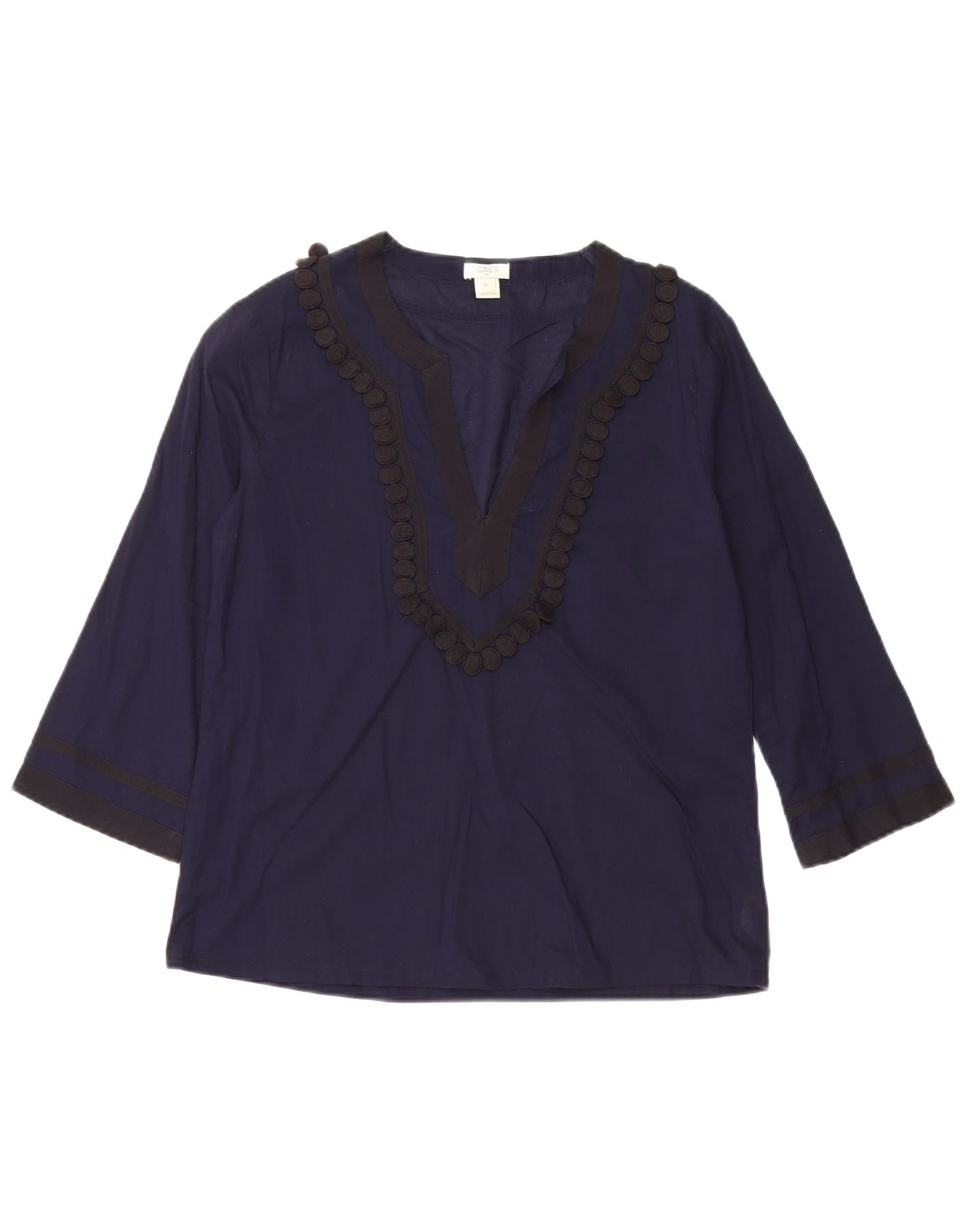 J. CREW Blusa extragrande de manga 3/4 para mujer UK 6 XS Algodón azul marino