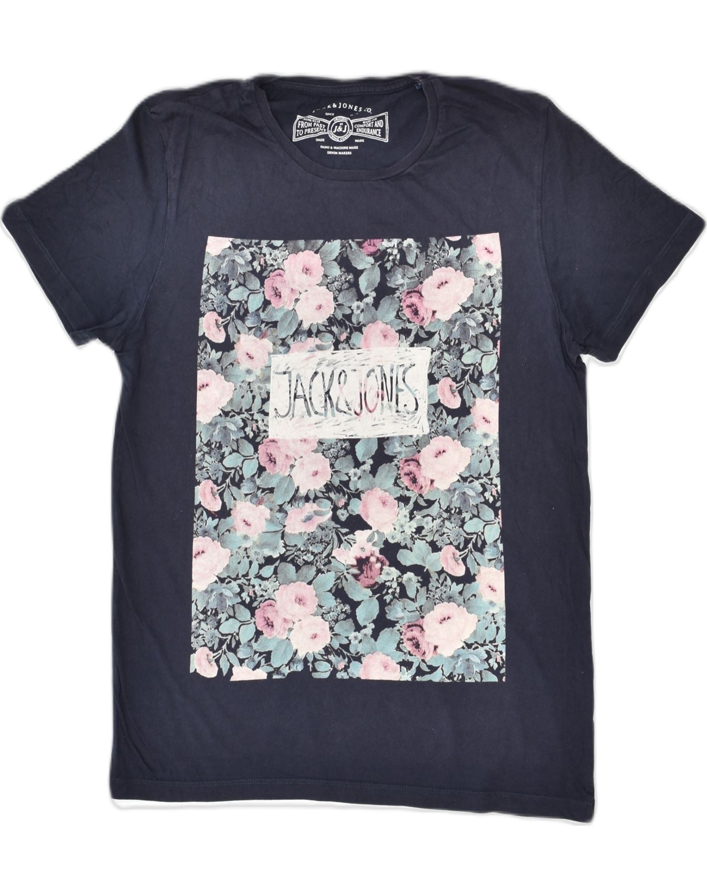 JACK & JONES Hombre Camiseta Gráfica Top Medium Azul Marino Floral Algodón