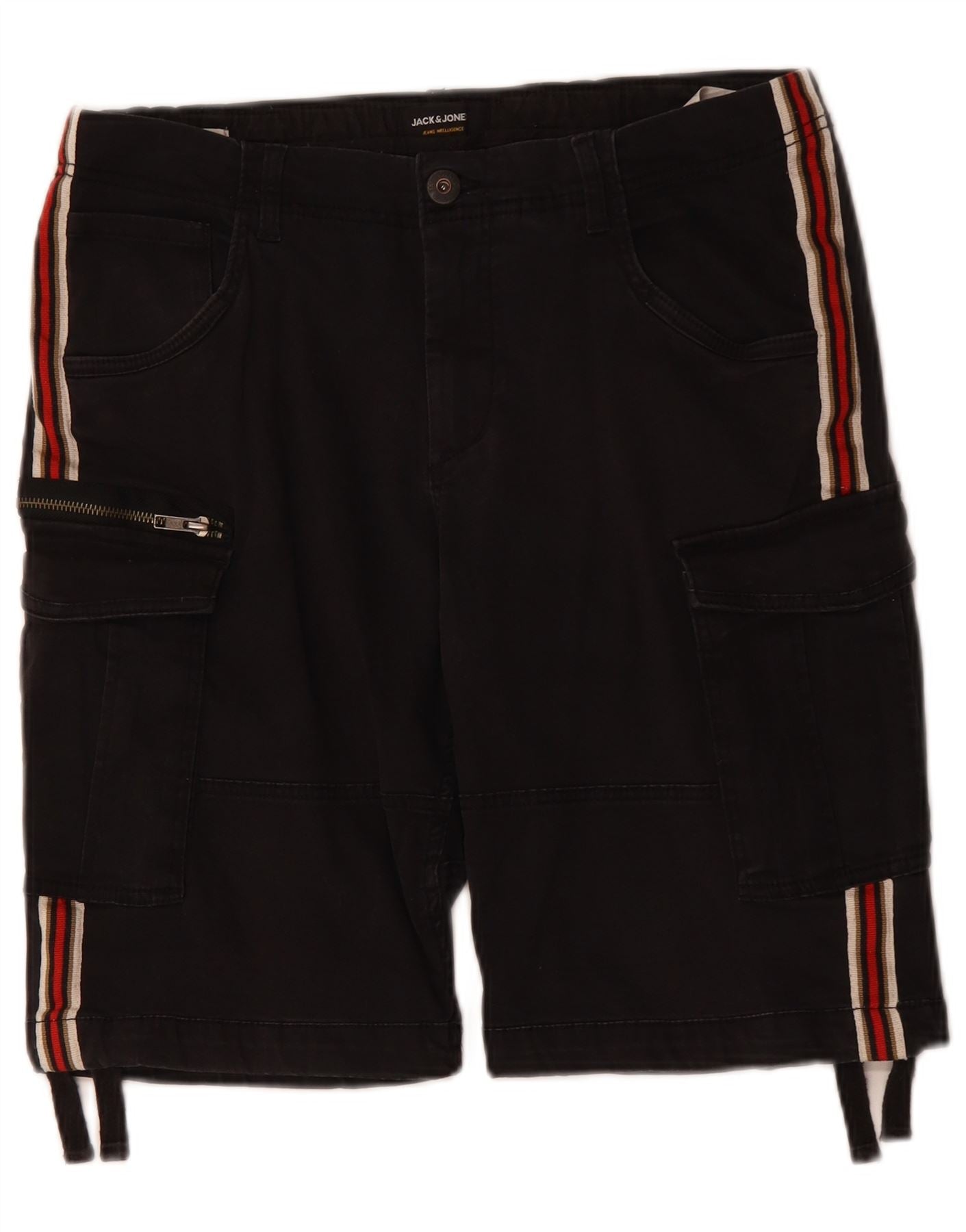 JACK & JONES Pantalones cortos cargo de ajuste cómodo para hombre mediano W30 algodón negro
