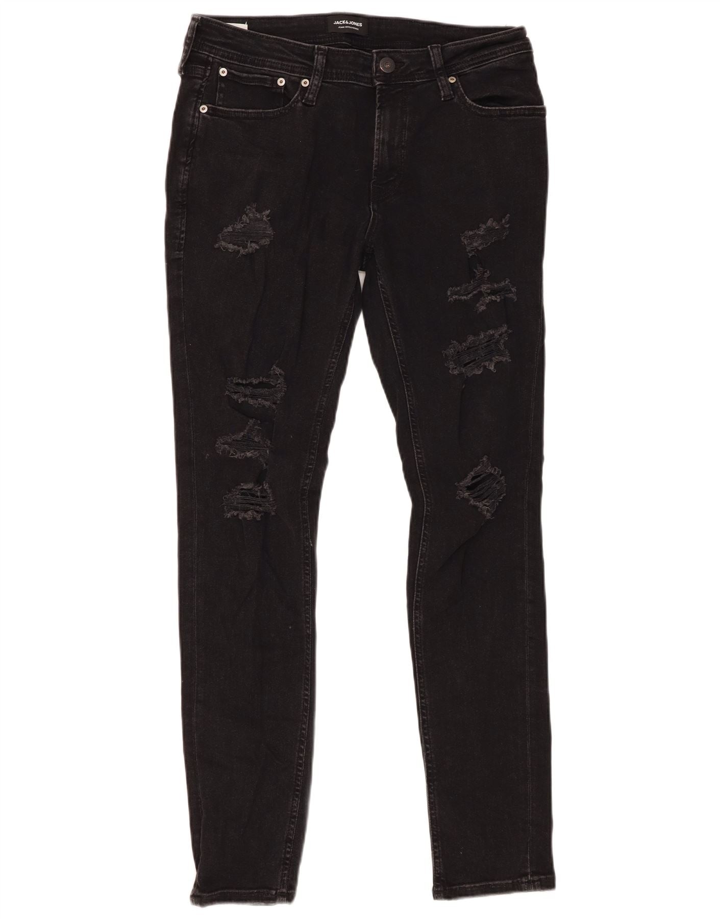 Jack & Jones Vaqueros pitillo desgastados para hombre W32 L32 Algodón negro