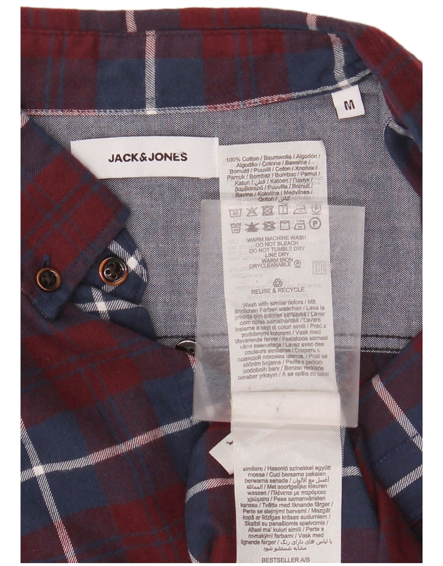 JACK & JONES Hombre Camisa de franela de algodón a cuadros en color burdeos medio