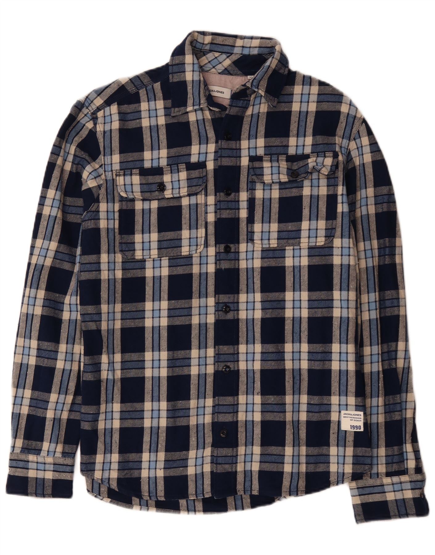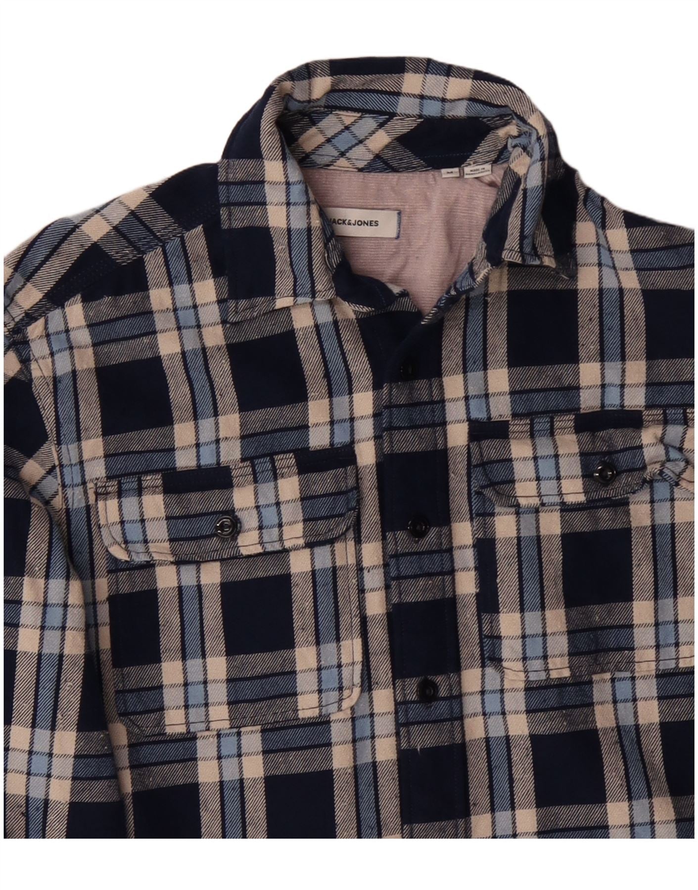 JACK & JONES Hombre Camisa De Franela Medium Azul Marino Cuadros Algodón