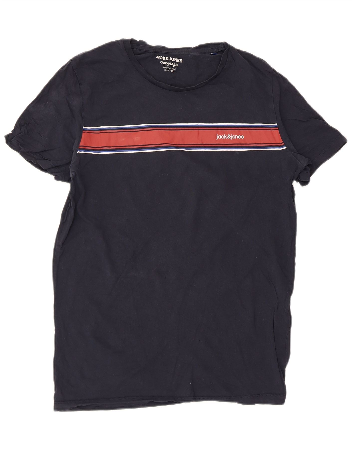 Jack & Jones Hombre Camiseta Gráfica Top Medium Azul Marino Rayas Algodón