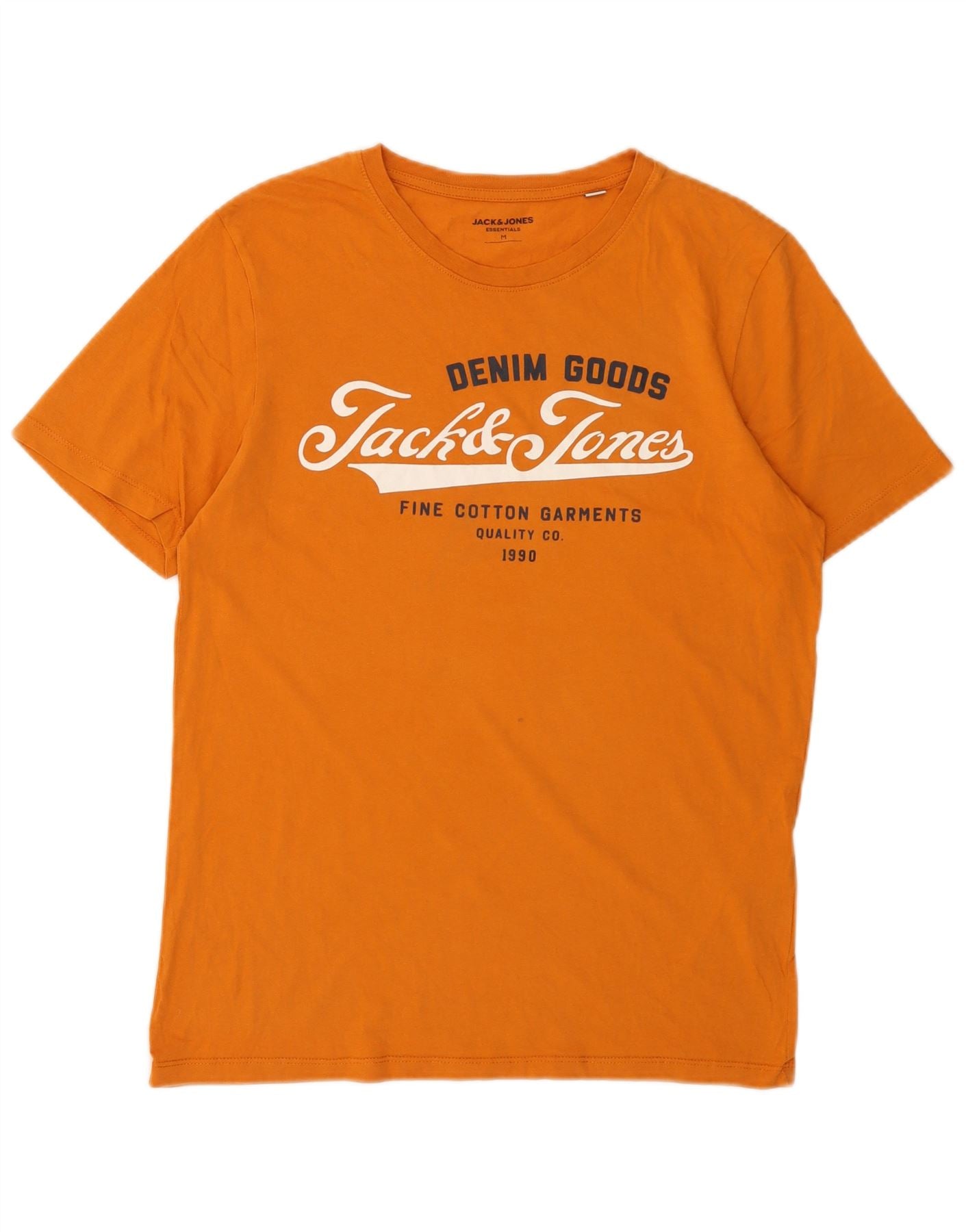 JACK & JONES Hombre Camiseta Gráfica Top Algodón Naranja Mediano