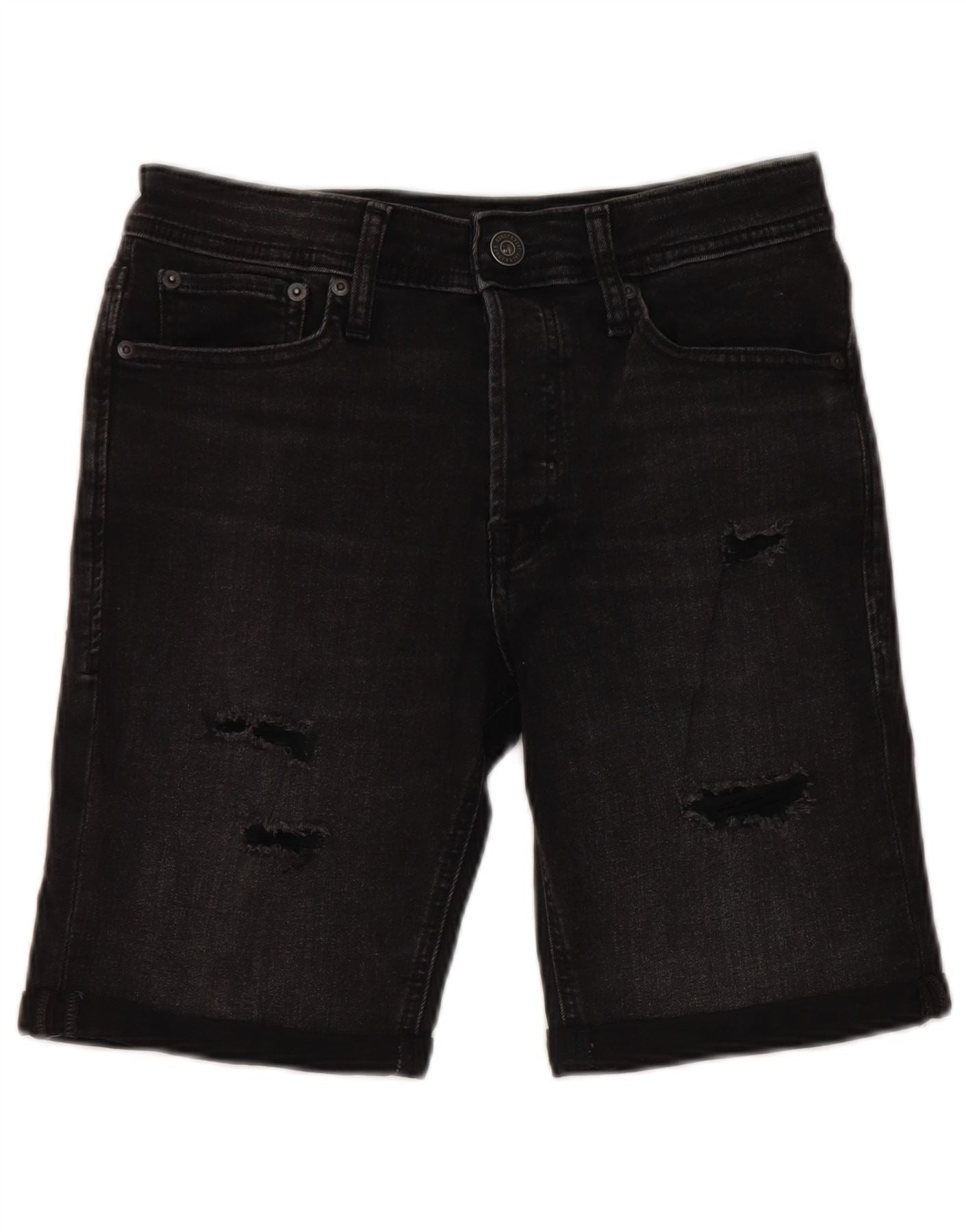 JACK & JONES Pantalones cortos de mezclilla desgastados regulares para hombre W30 Algodón negro mediano