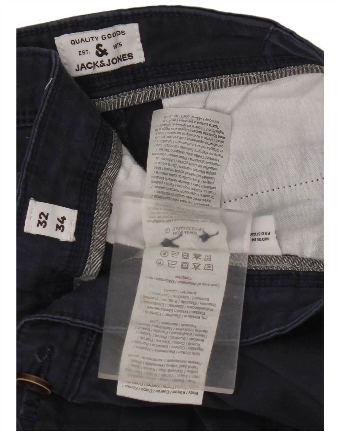 JACK & JONES Pantalón chino pitillo para hombre W32 L31 Algodón azul marino