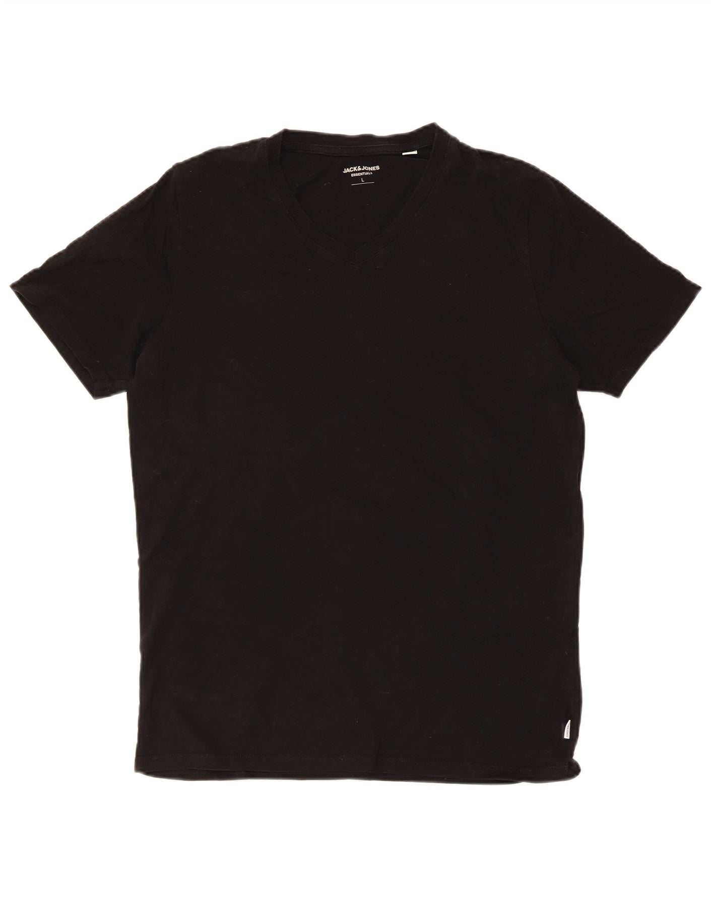 JACK & JONES Hombre Camiseta Top Grande Negro Algodón